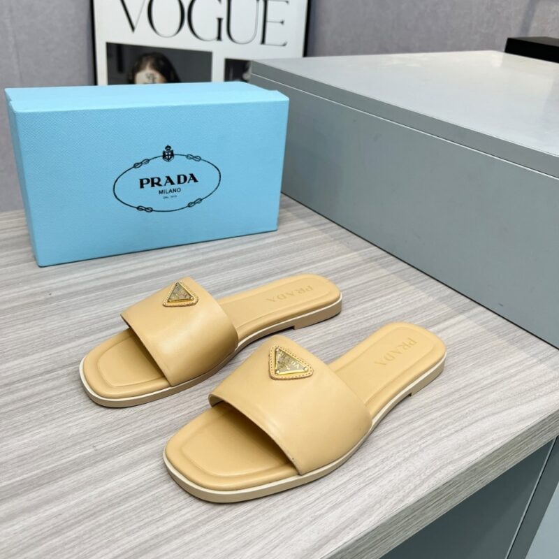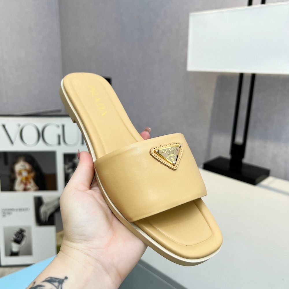 PRADA SAFFIANO PATENT LEATHER SLIDES BEIGE
