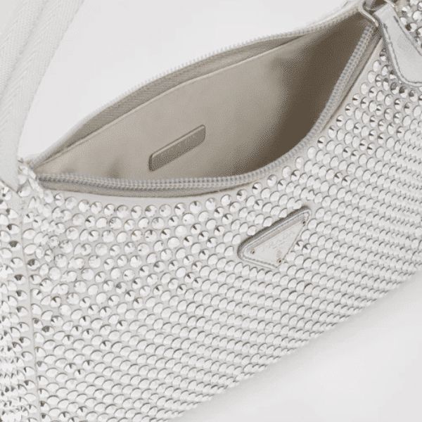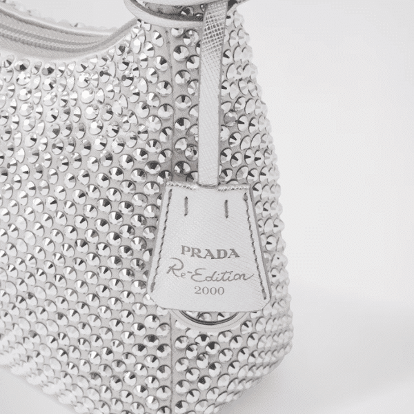 Prada Satin Mini Bag With Artificial Crystals Silver 1NE515 2AWL F0118 / 21cm / 8.3 inches