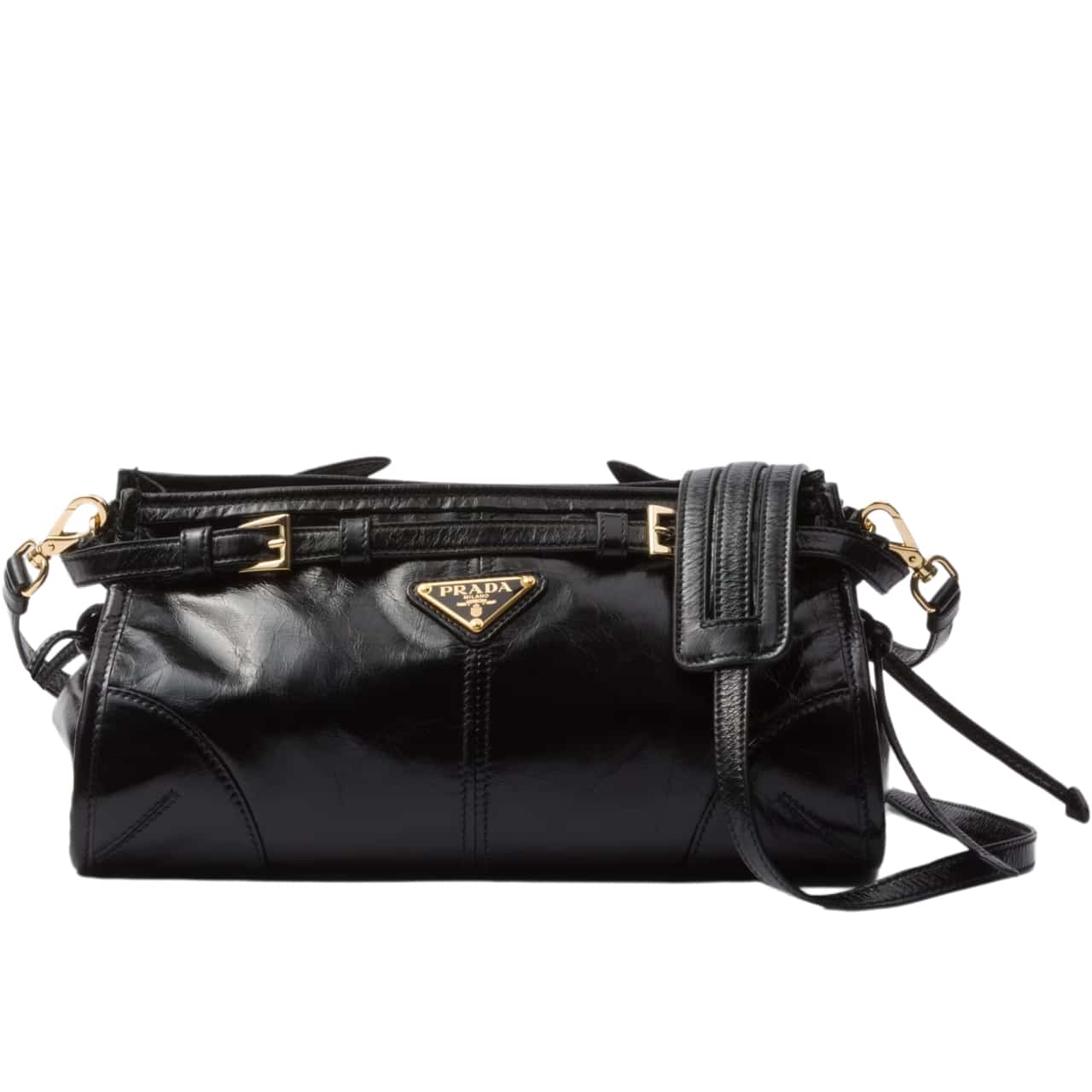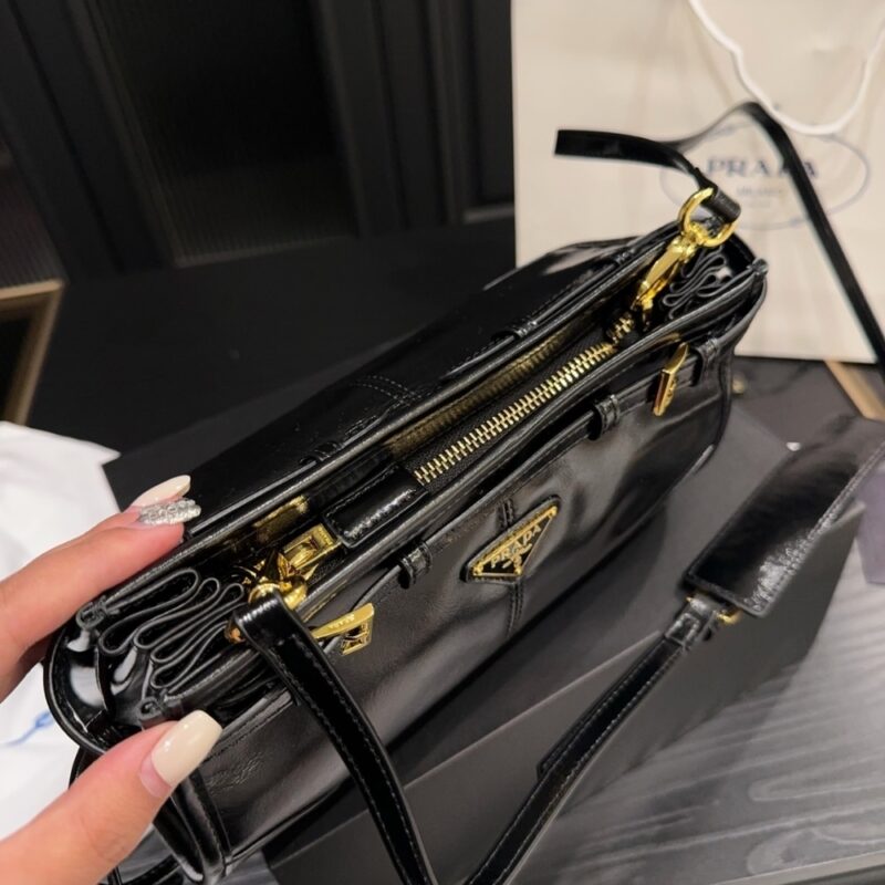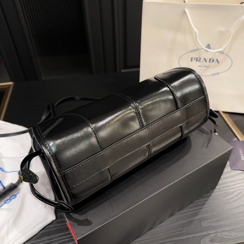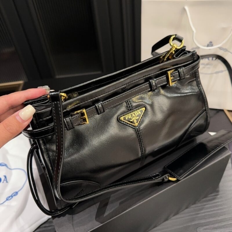PRADA SMALL LEATHER SHOULDER BAG BLACK 26CM 1BH215 2CYR F0002 V OOO