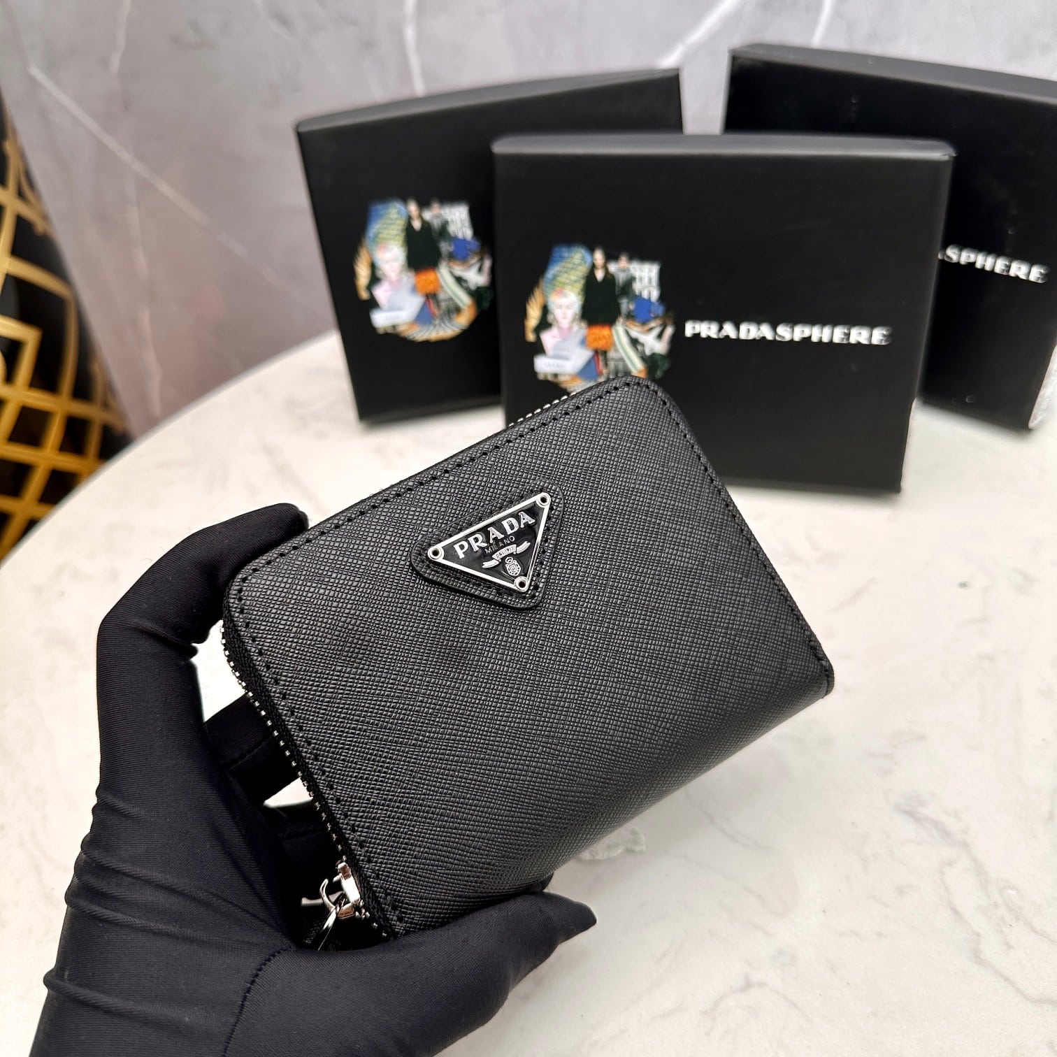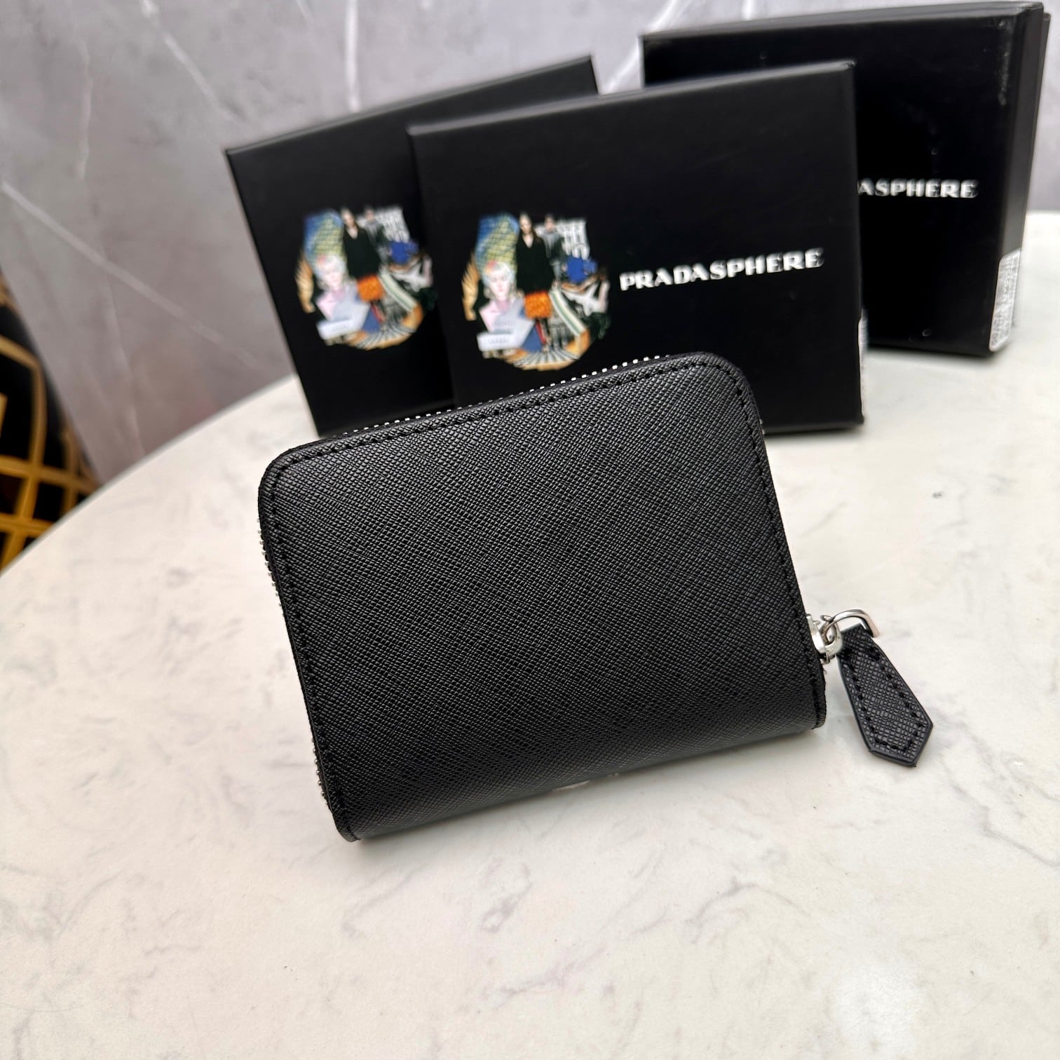 Prada Small Saffiano Leather/10cm Wallet Black And Silver 1ml036 Qhh F0002