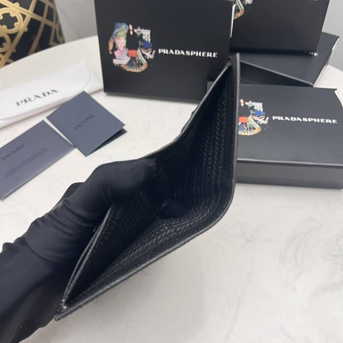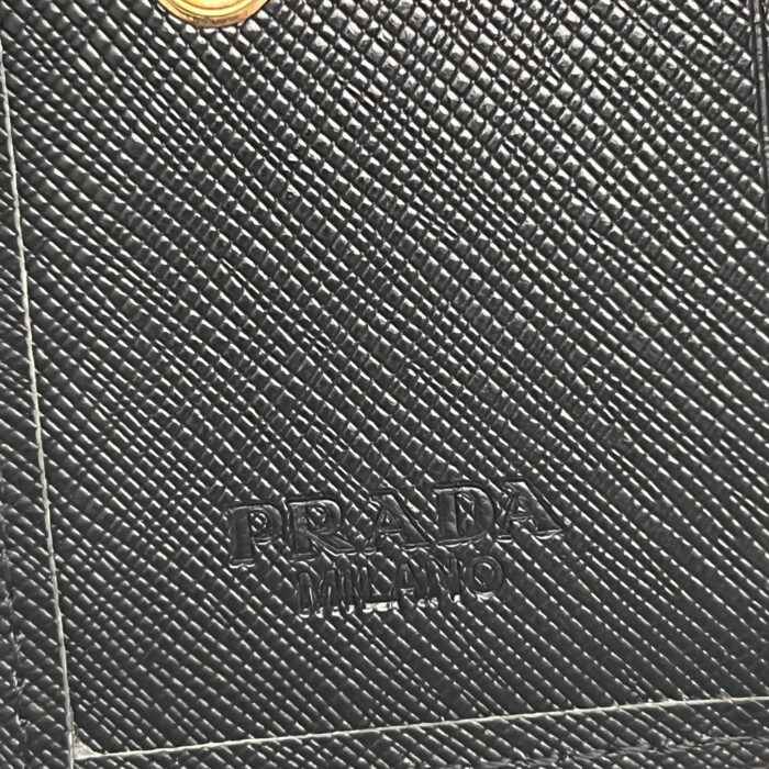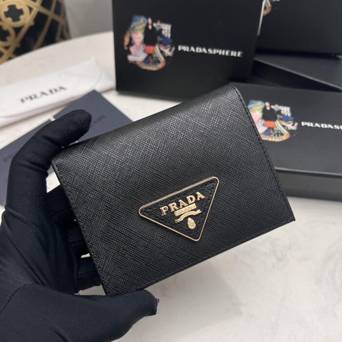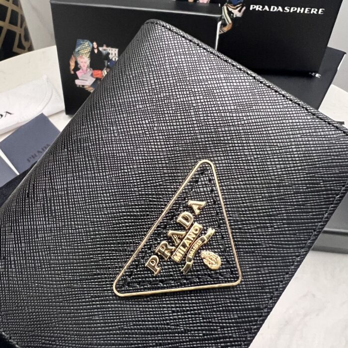 Prada Small Saffiano/10cm Lux Leather Flap Continental Triangle Black Wallet