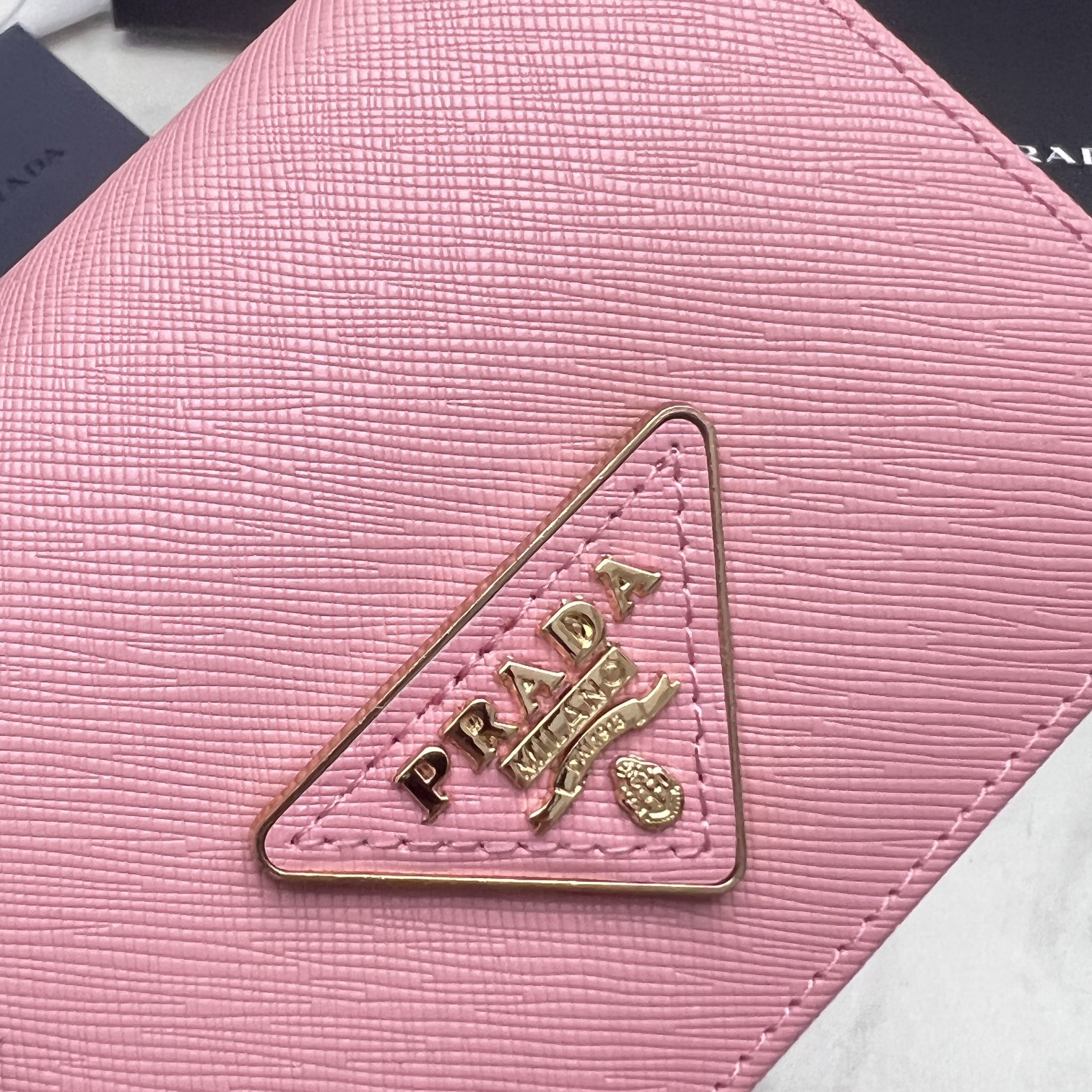 Prada Small Saffiano/10cm Lux Leather Flap Continental Triangle Light Pink Wallet