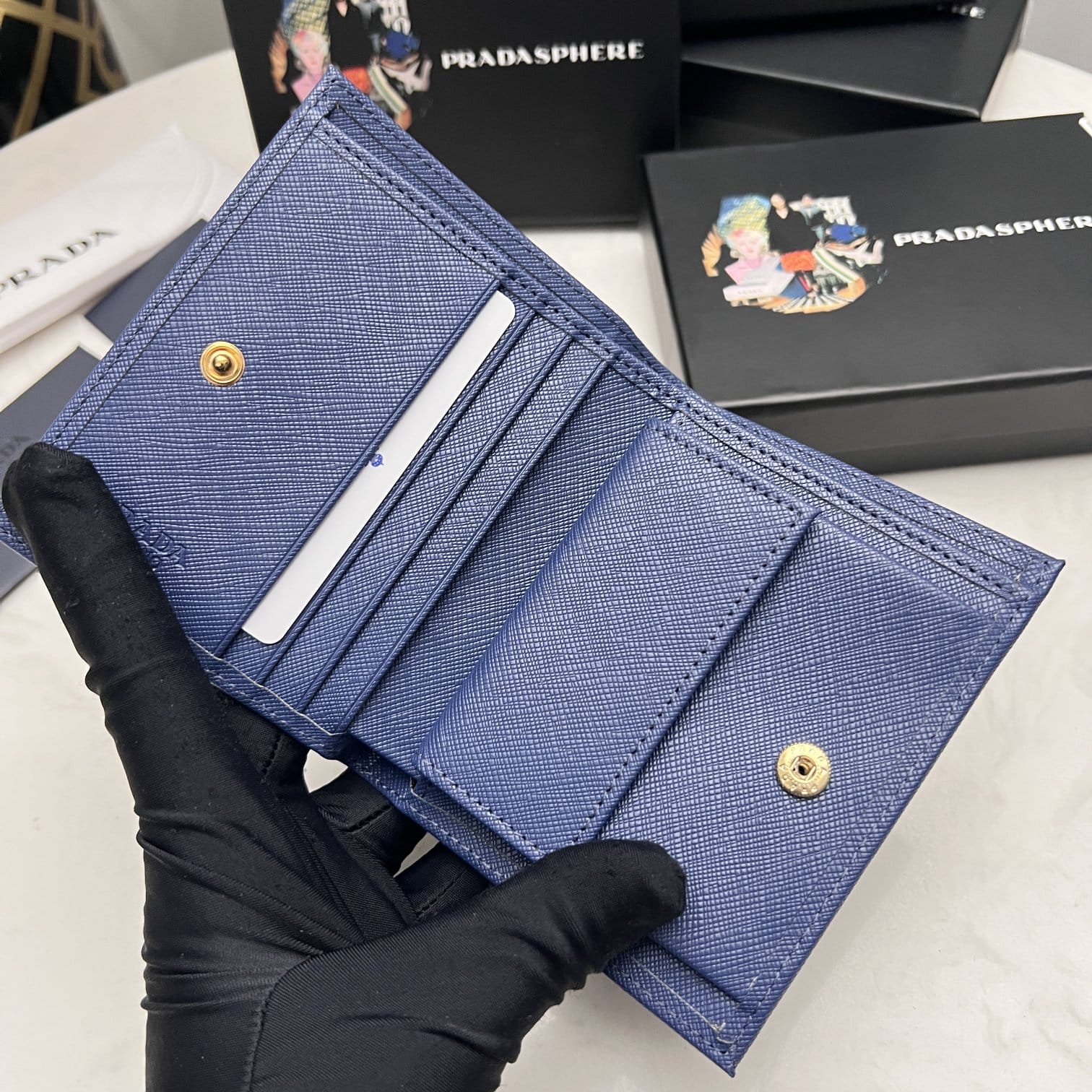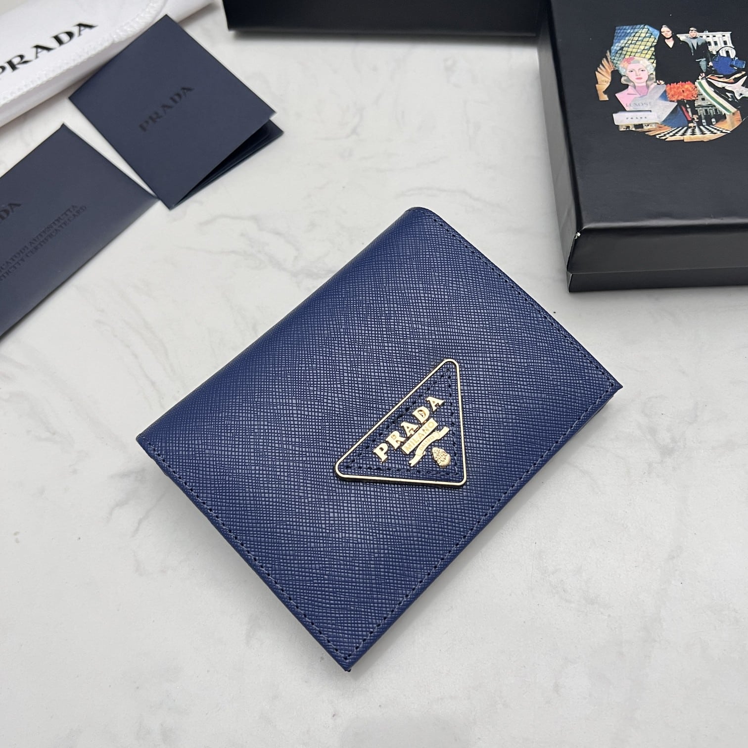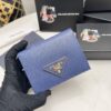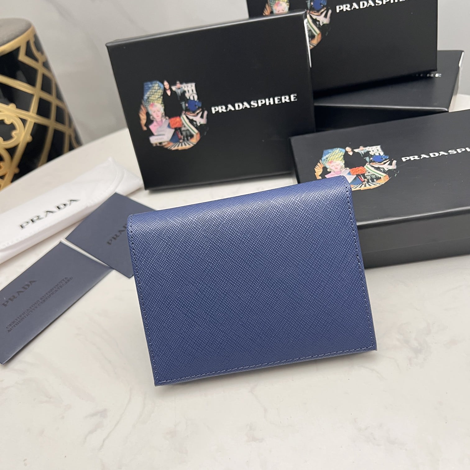 Prada Small Saffiano/10cm Lux Leather Flap Continental Triangle Navy Blue Wallet