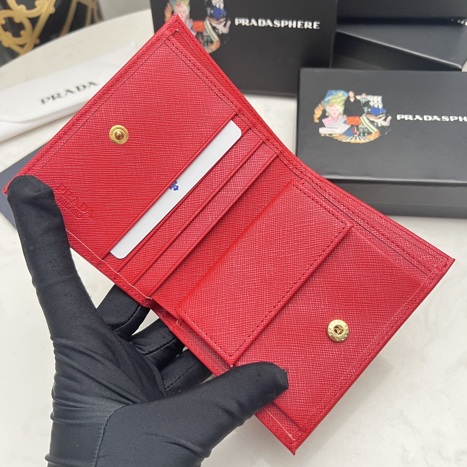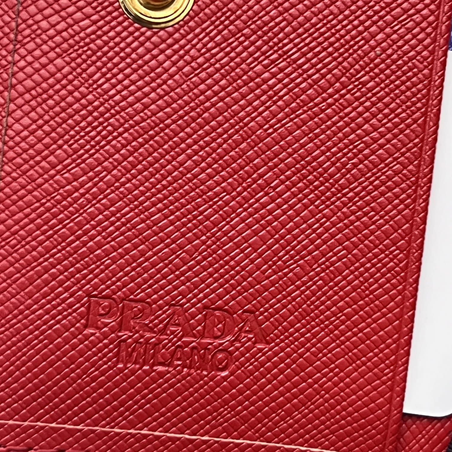 Prada Small Saffiano/10cm Lux Leather Flap Continental Triangle Red Wallet