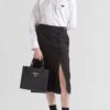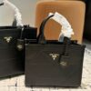Prada nylon logo lining with two pockets, one with zipper
