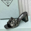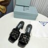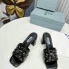 Prada Studded Metallic Leather Mules Black
