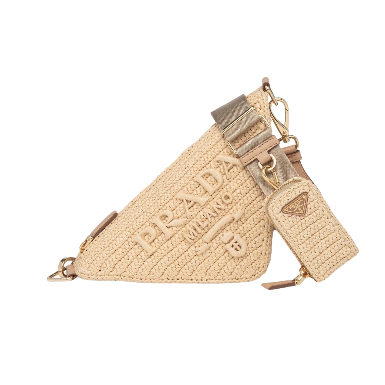 PRADA TRIANGLE CROCHET SHOULDER BAG NATURAL 25CM 1BH190 2A2T F0018 V DUO