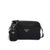 PRADA TRIANGLE LOGO RE NYLON AND SAFFIANO LEATHER BLACK 24CM 2VH048 2DMH F0002 V OOO