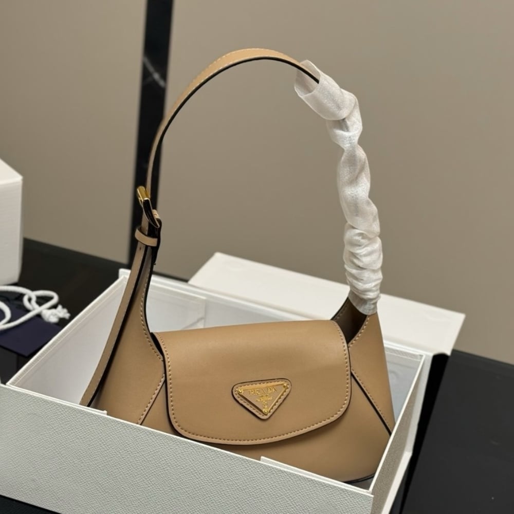 Prada Triangle Logo Shoulder Bag Beige 24 cm/ 9.4 inches
