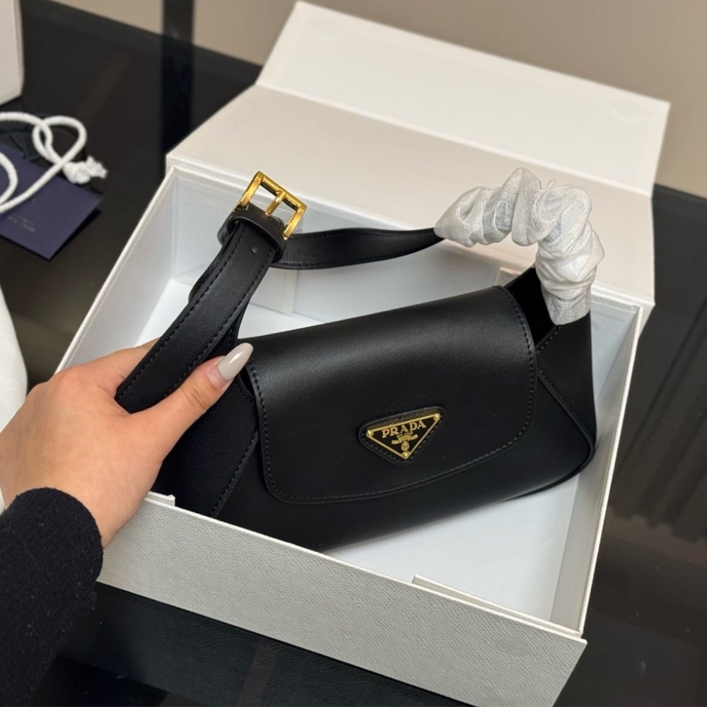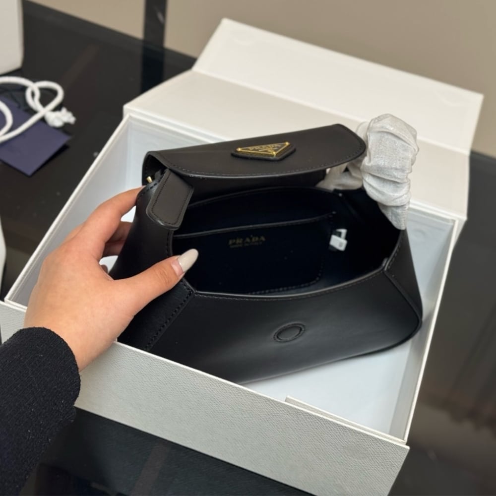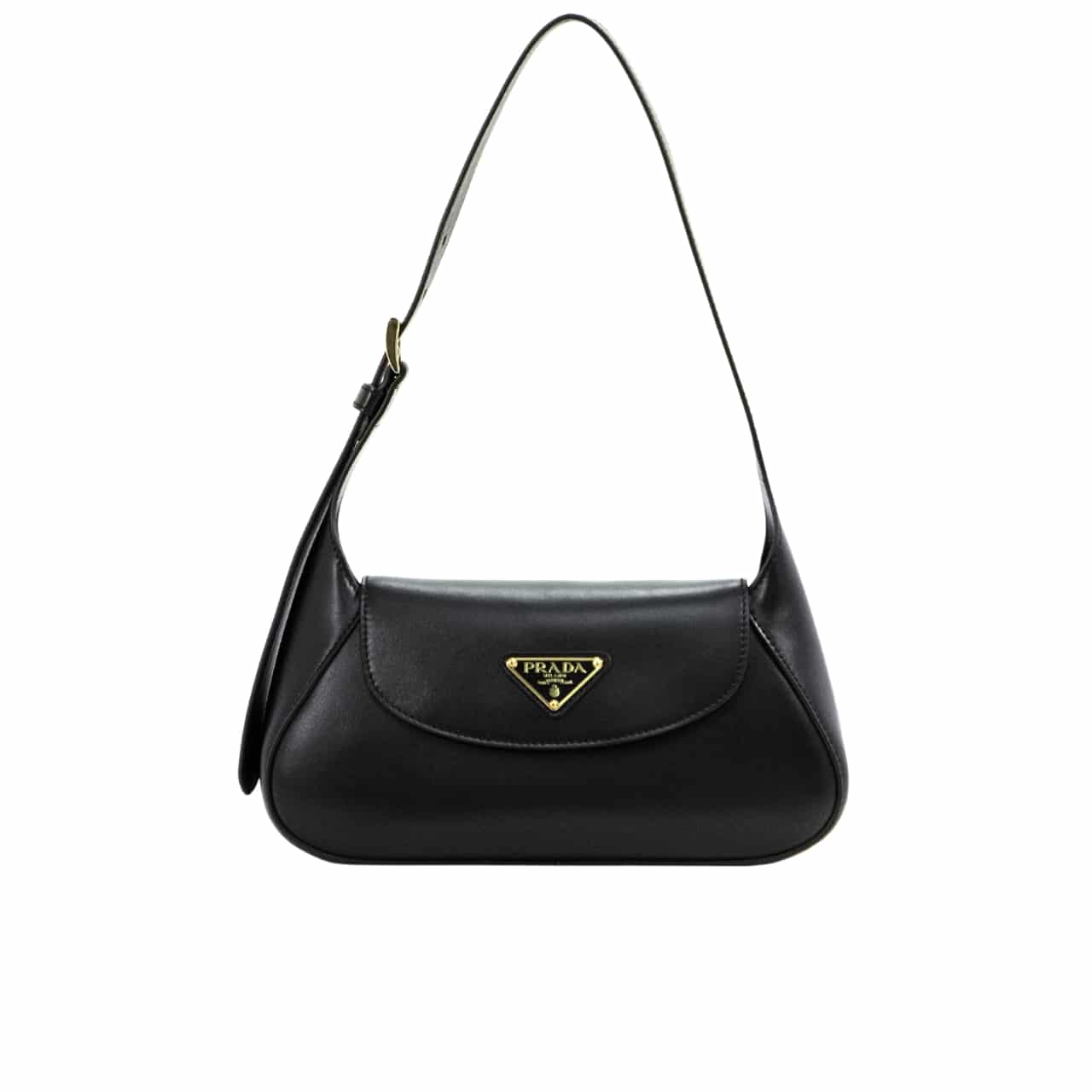 Prada Triangle Logo Shoulder Bag Black 24 cm/ 9.4 inches