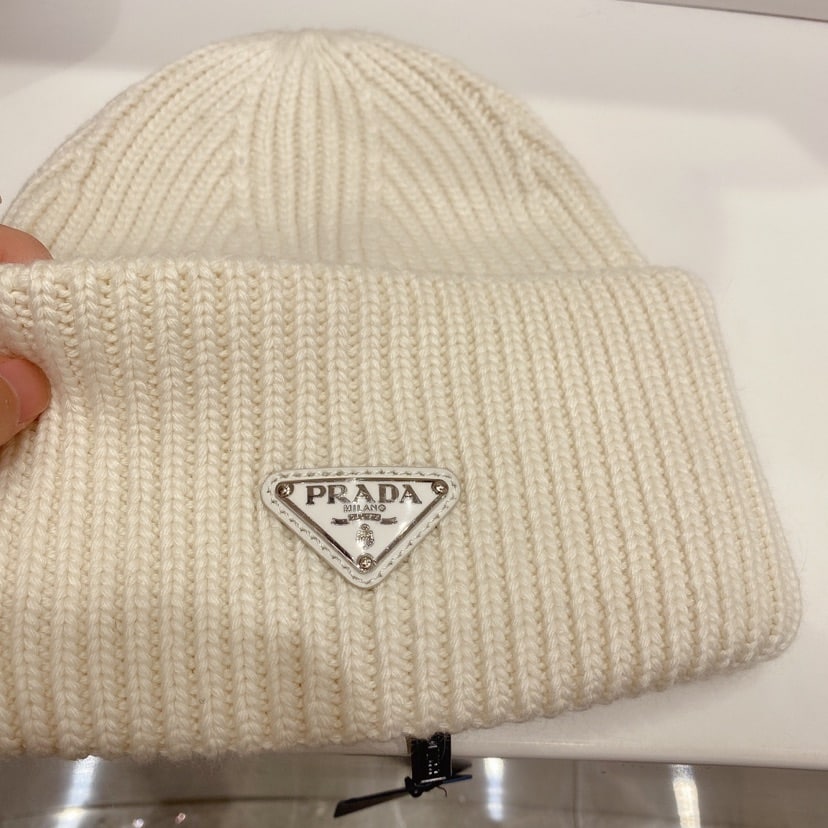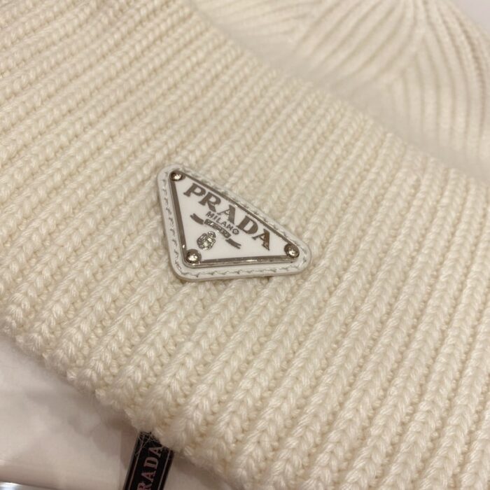 Prada Wool And Cashmere Beanie Silver White UMD489 3IM F0009 S 211
