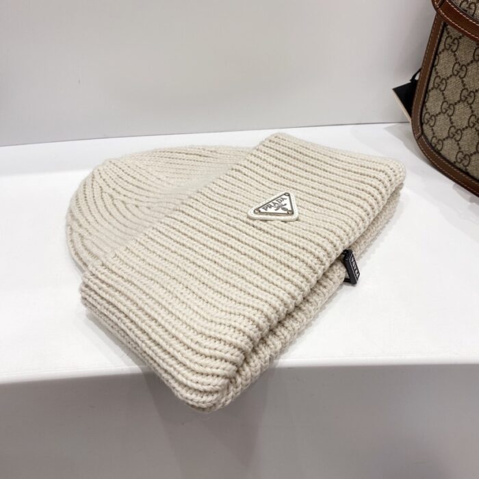 PRADA WOOL AND CASHMERE BEANIE SLIVER CREAM