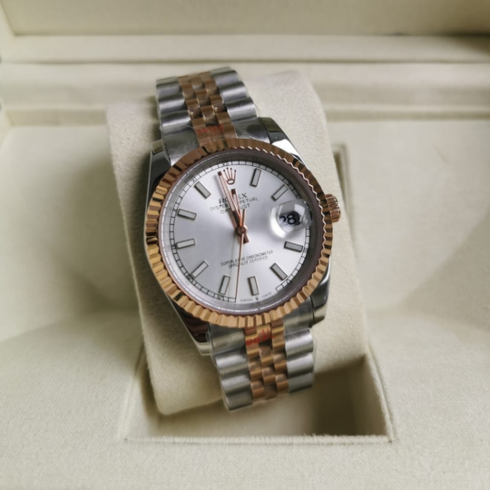 ROLEX OYSTER PERPETUAL DATEJUST WHITE DIAL WITH SILVER AND EVEROSE GOLD STRAP 36MM 126231 0017