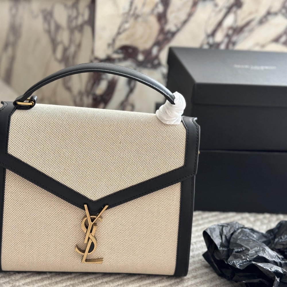 SAINT LAURENT CASSANDRA MEDIUM TOP HANDLE BAG IN CANVAS 25CM