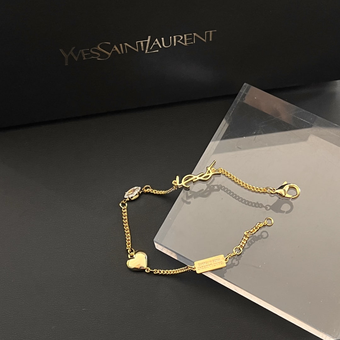 Saint Laurent Cassandre Heart Charm Bracelet Gold 701950Y15269137