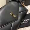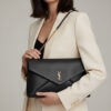 Extra-large chain pouch decorated with the CASSANDRE. A stowable cable-chain strap allows this modern and versatile bag to be worn on the shoulder or held as a clutch.