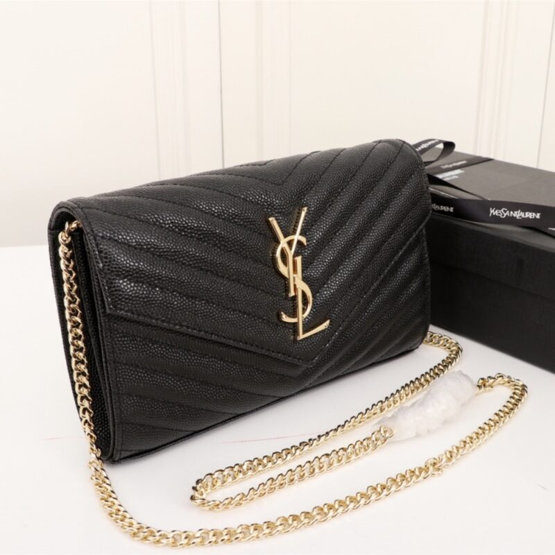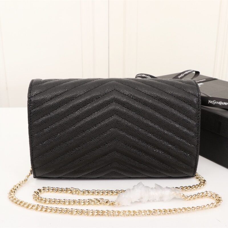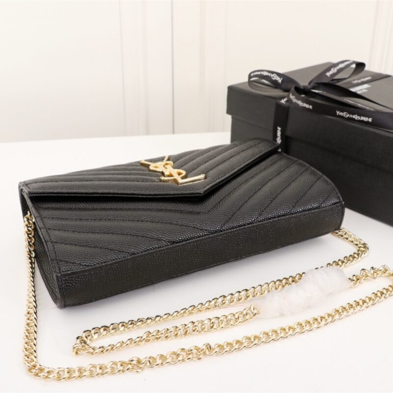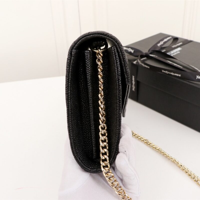 Timeless Chain Purse With Cassandre Embellishment And Iconic Chevron Quilting. This Practical Accessory Features Two Large Compartments, A Zipper Pocket And Card Slots. It Can Be Carried In The Hand As A Clutch Or On The Shoulder With Its Detachable Chain.