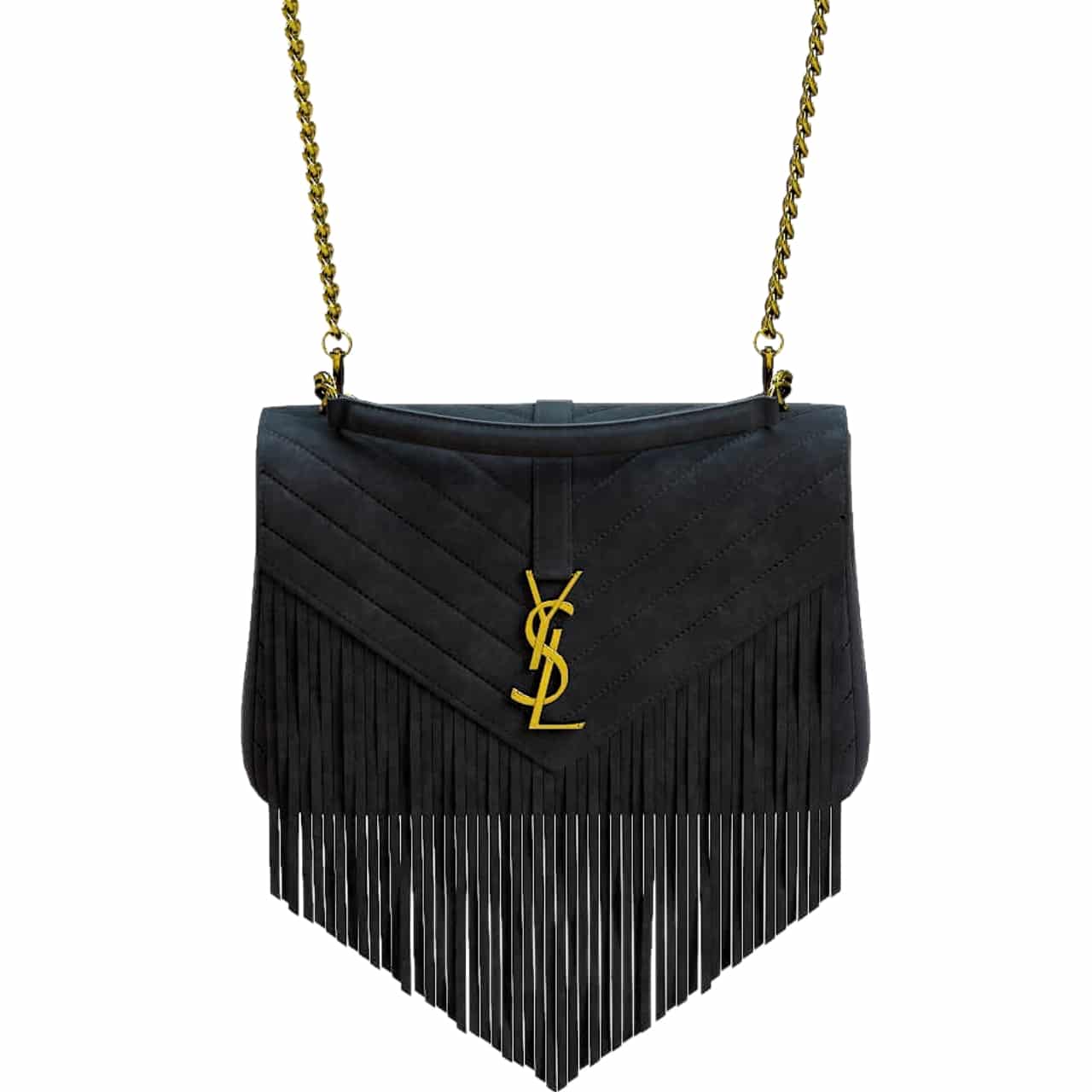 Saint Laurent College Medium Suede Shoulder Bag / Black 24Cm