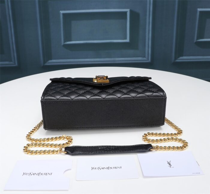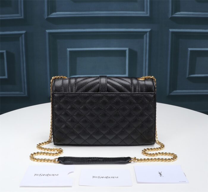 Saint Laurent Envelope Small In Quilted Grain De Poudre Embossed Leather Gold Black 600195BOW911000 / 21cm / 8.2 Inches