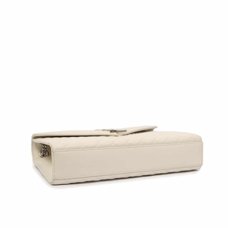 Saint Laurent Grain De Poudre Matelasse Chevron Large Triquilt Monogram Satchel White / 30 Cm / 11.8 Inches