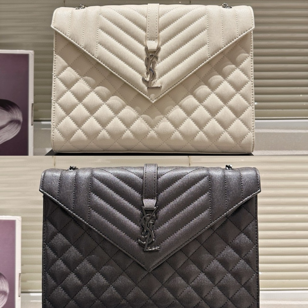 SAINT LAURENT GRAIN DE POUDRE MATELASSE CHEVRON LARGE TRIQUILT MONOGRAM SATCHEL WHITE 30CM ARS4381340717