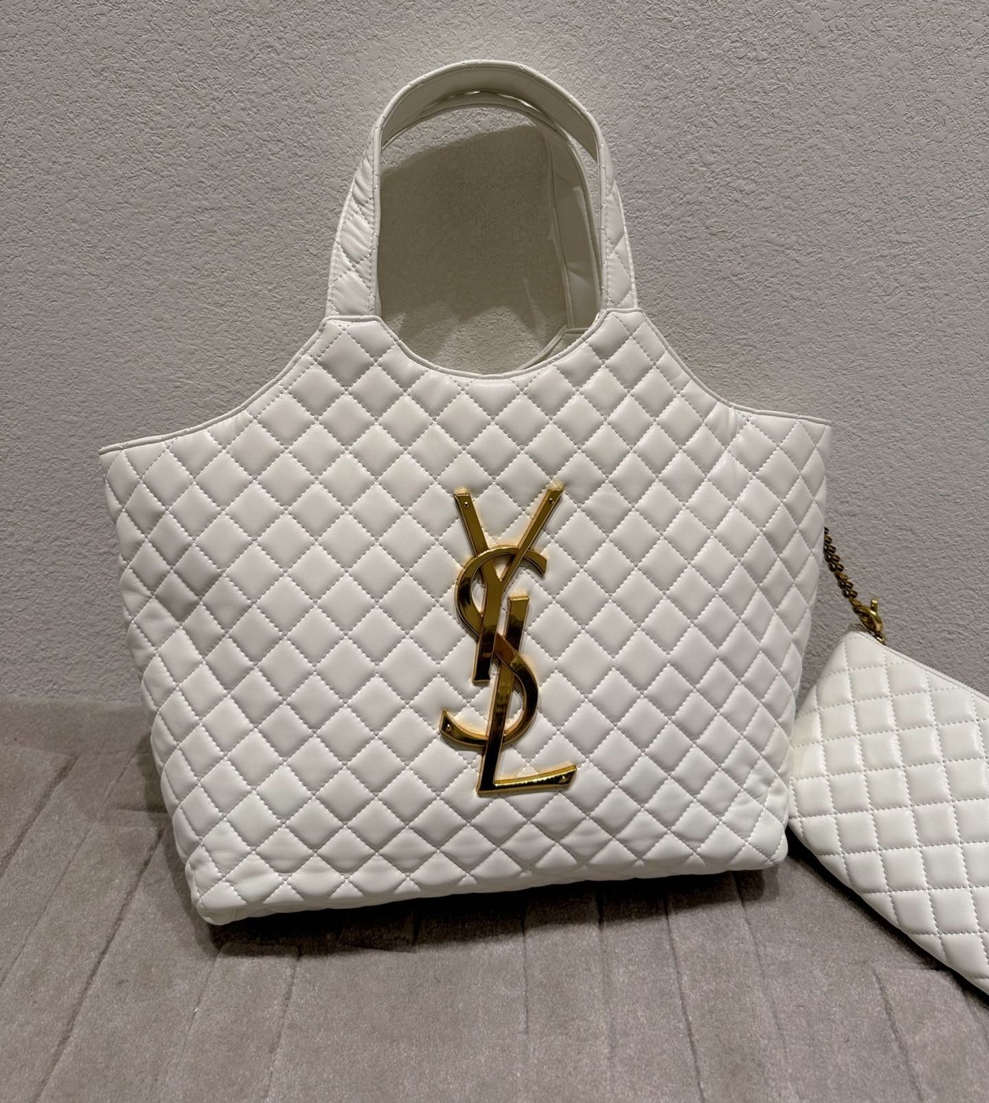 Saint Laurent Icare Shopping Bag In Quilted / White 40Cm