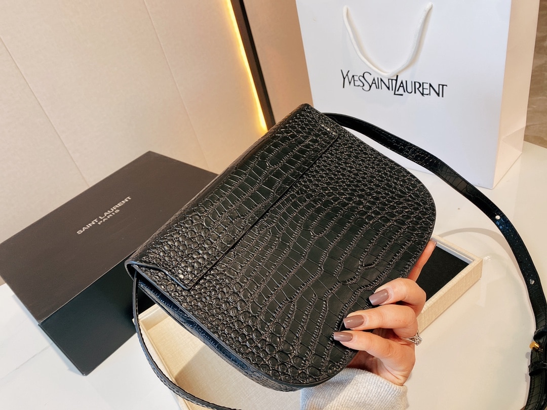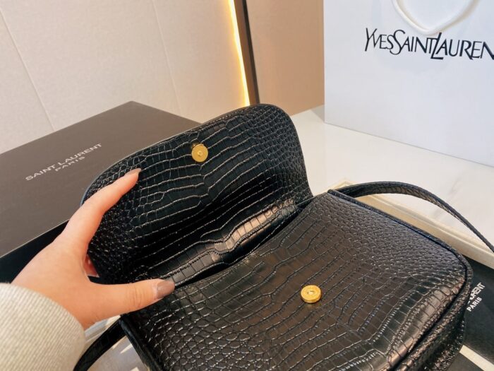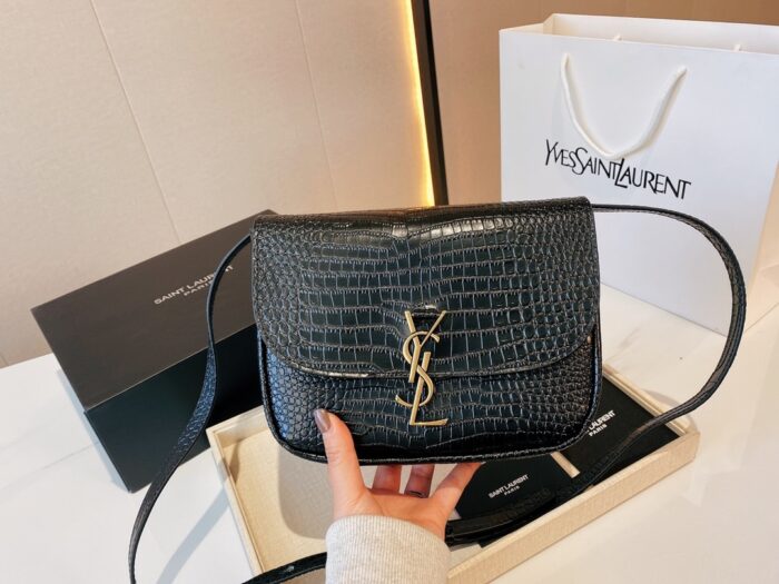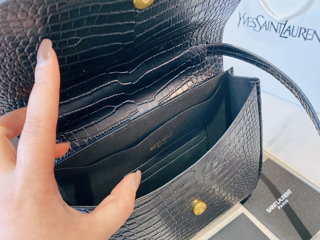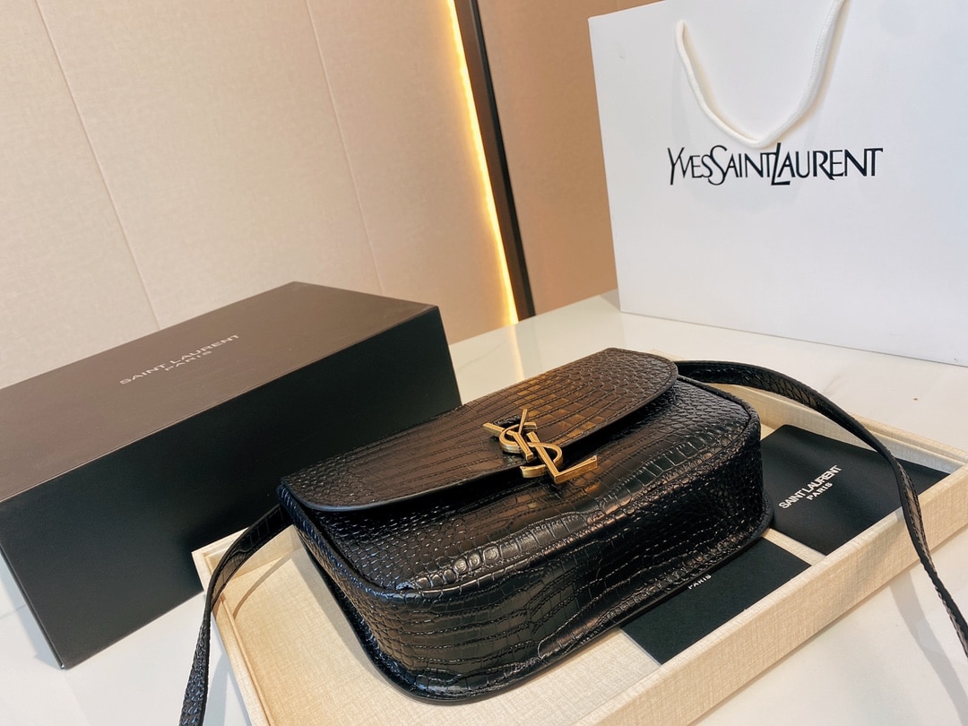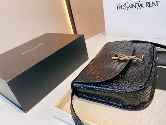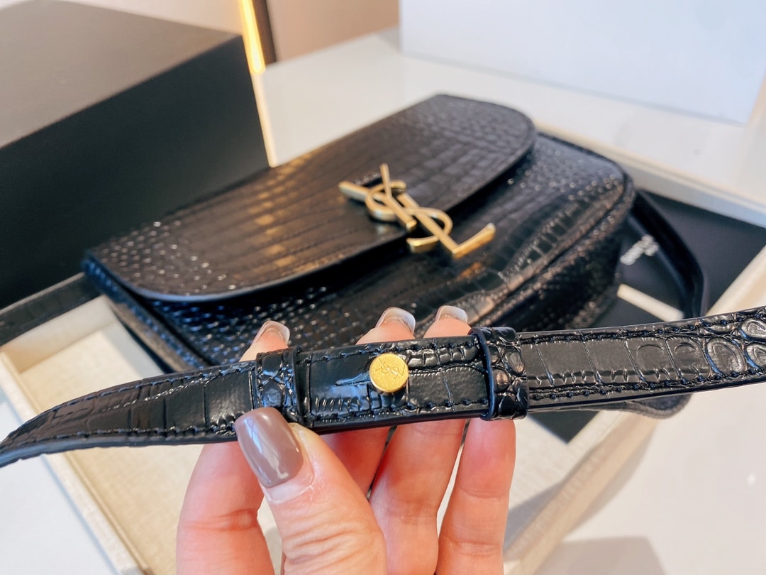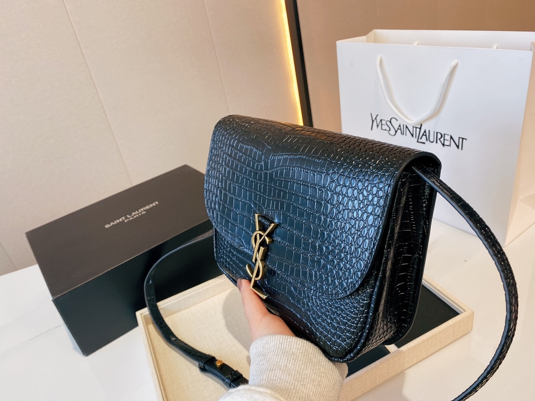 SAINT LAURENT KAIA MEDIDUM EMBOSSED LEATHER BLACK GOLD BAG SIZE 23CM