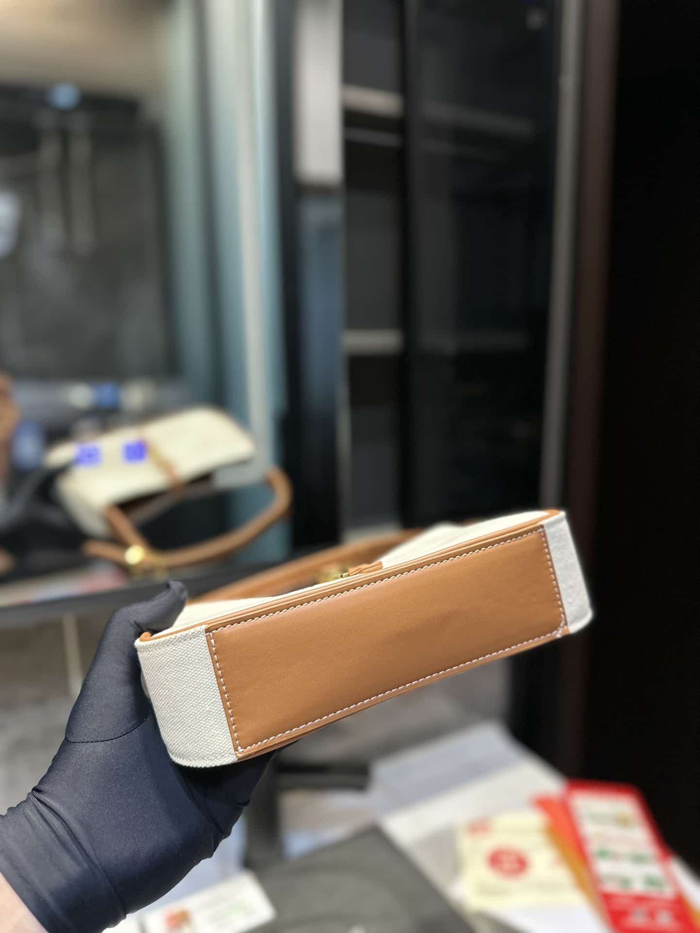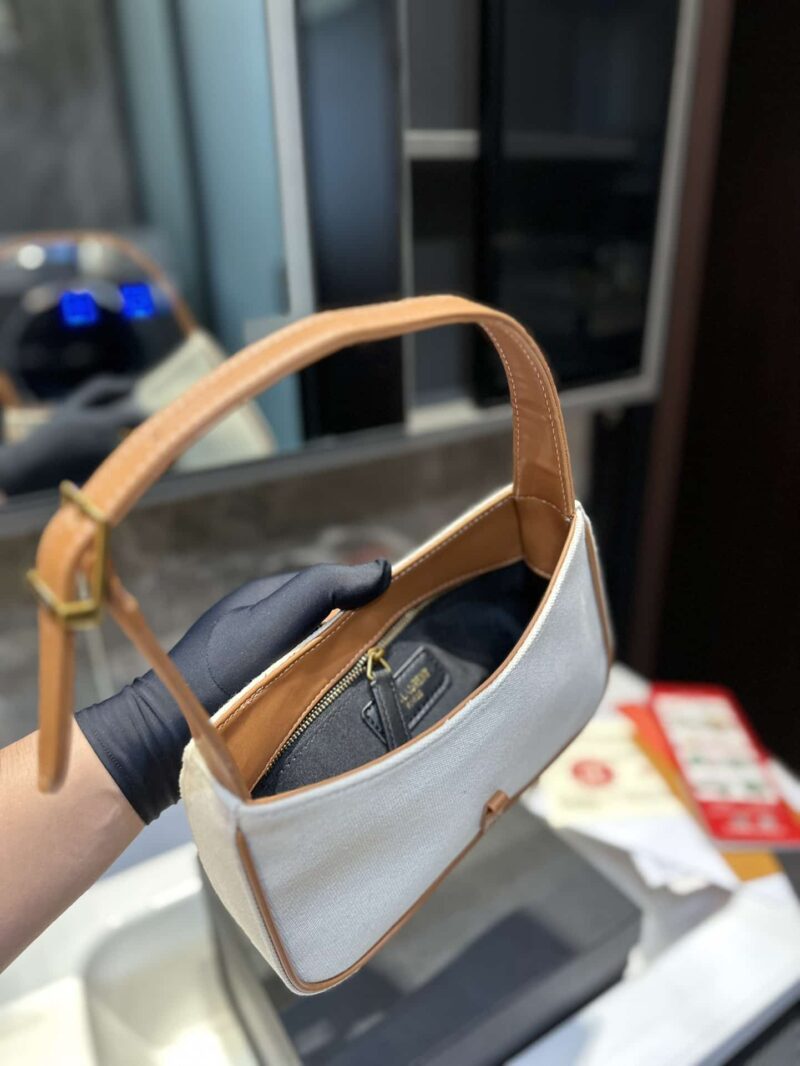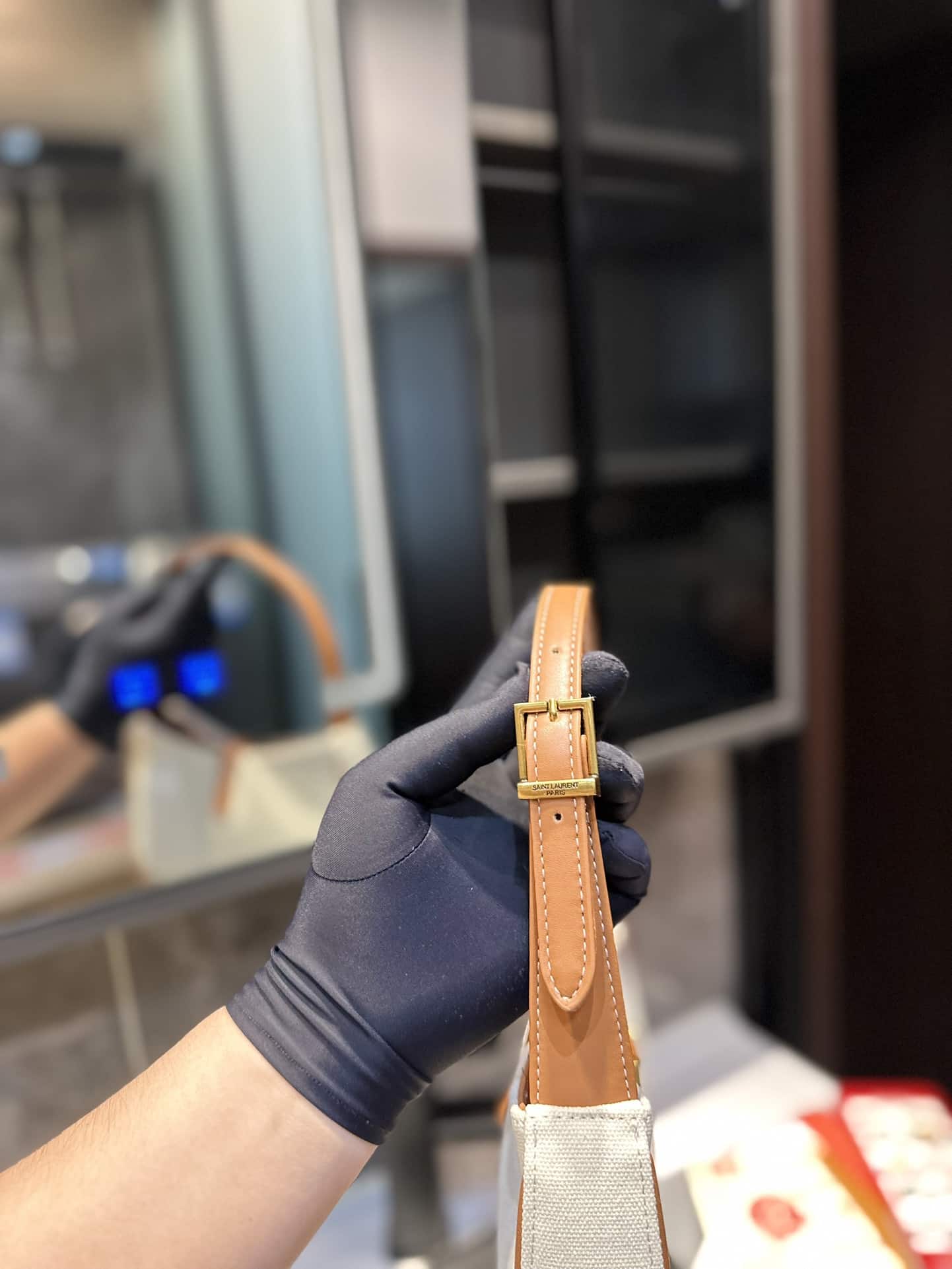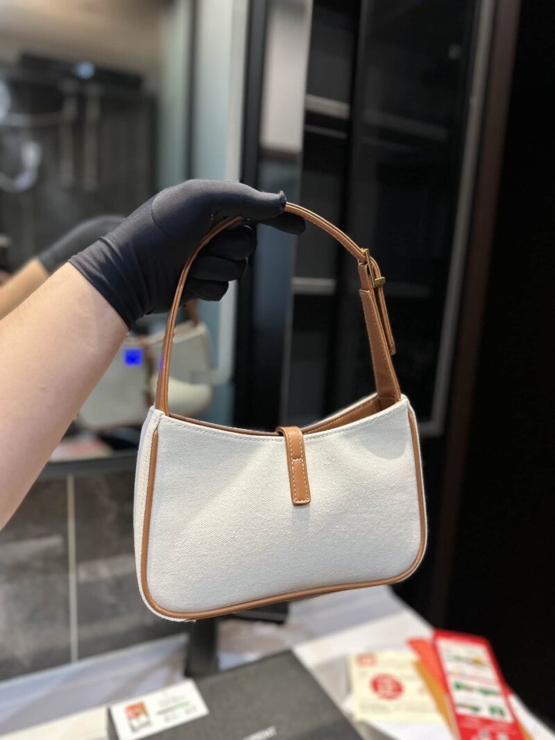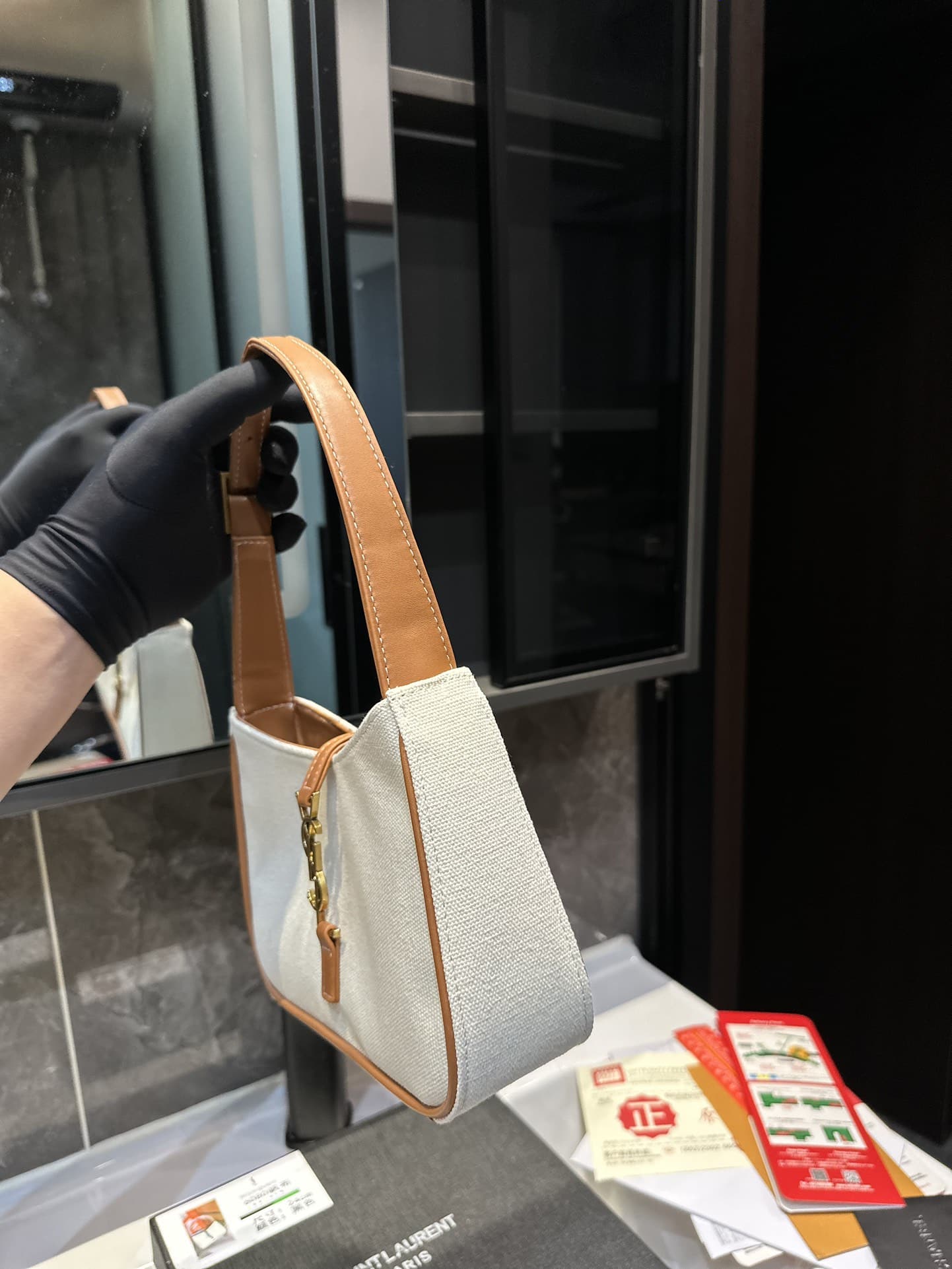 Saint Laurent  //Le 5 À 7 Linen Canvas Hobo Bag// White And Brown// 25cm