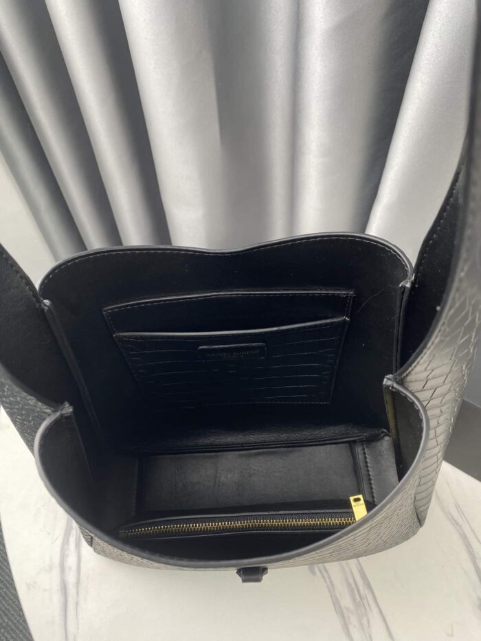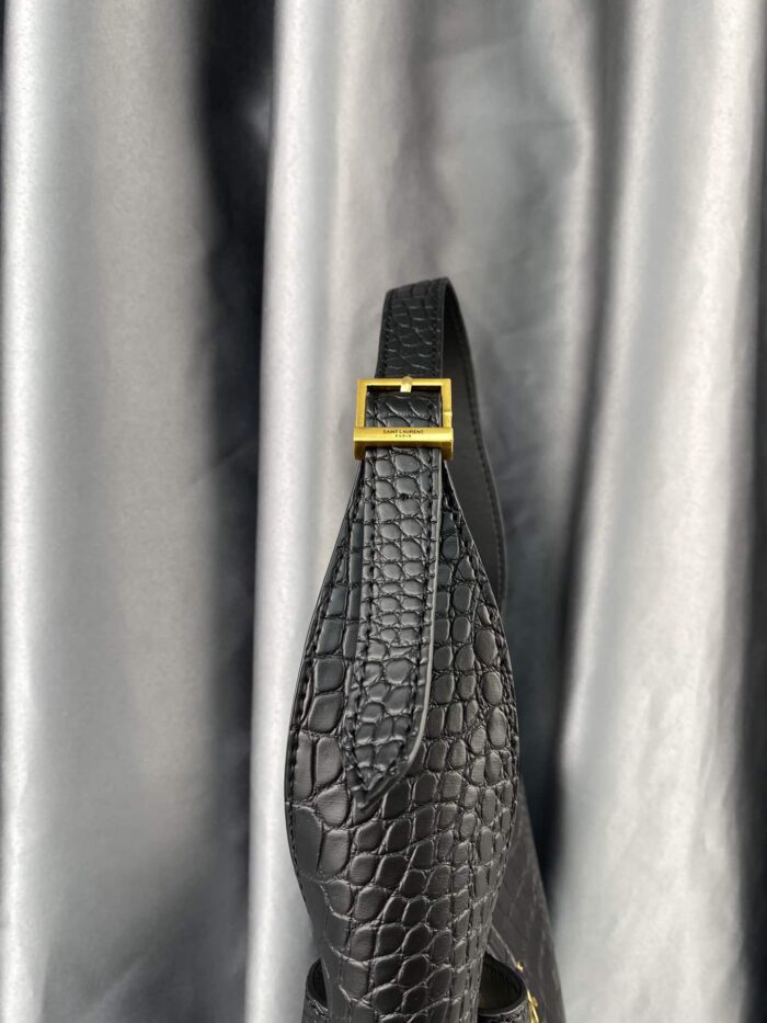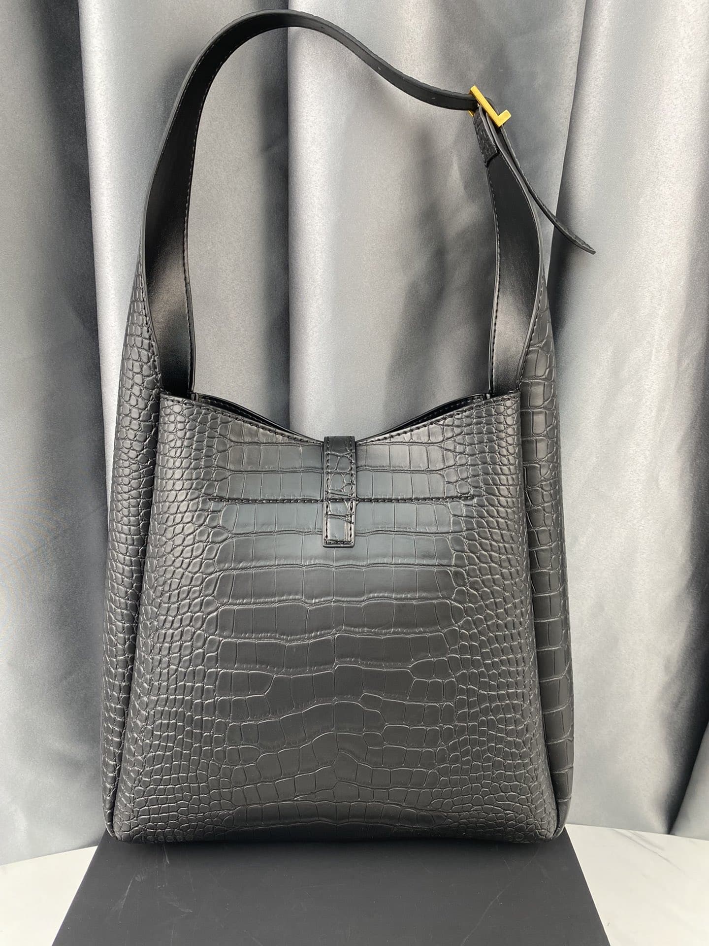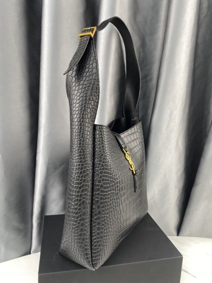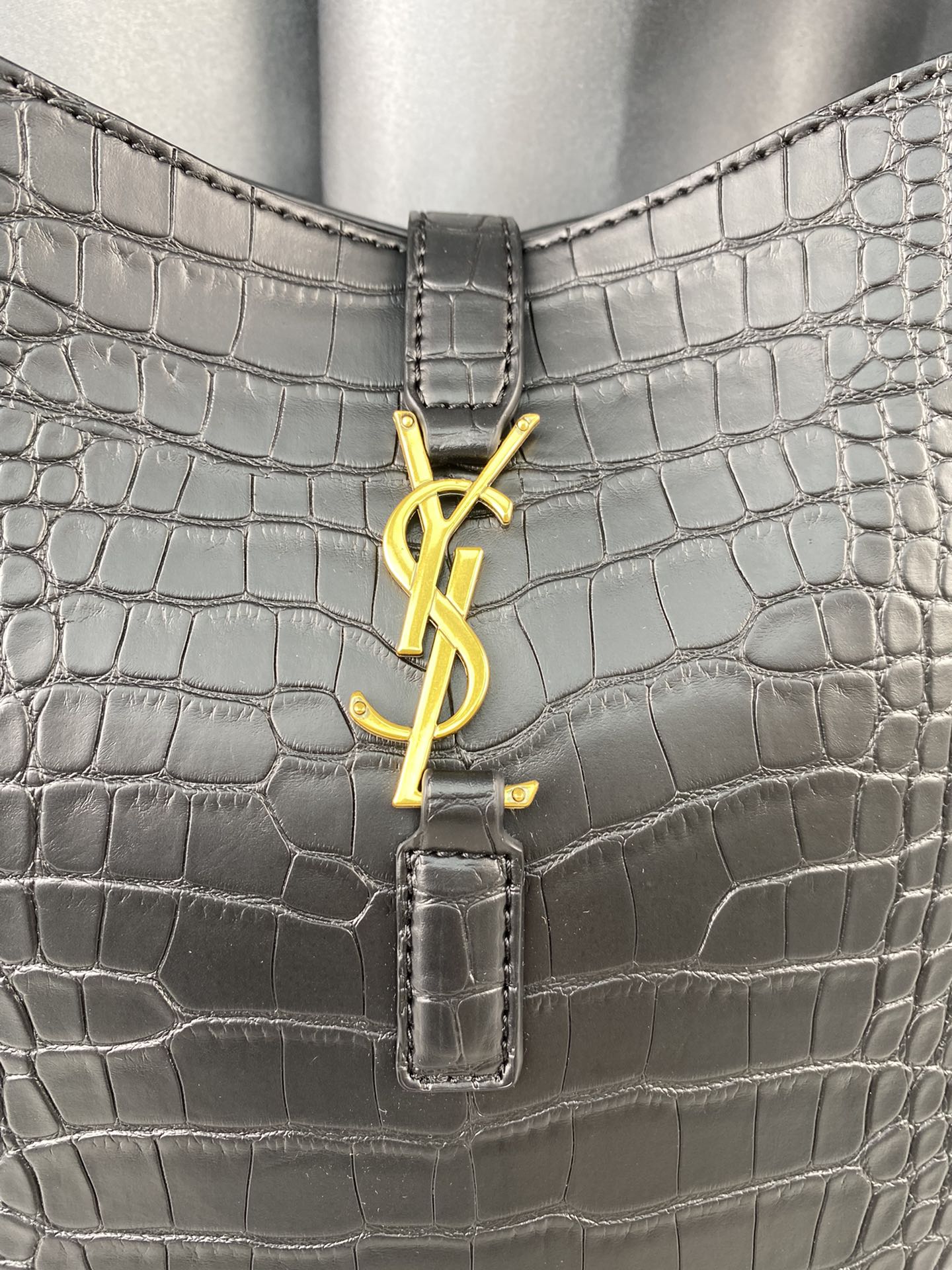 SAINT LAURENT LE 5 À 7 SOFT SMALL HOBO BAG IN EMBOSSED LEATHER BAGS BLACK 27CM