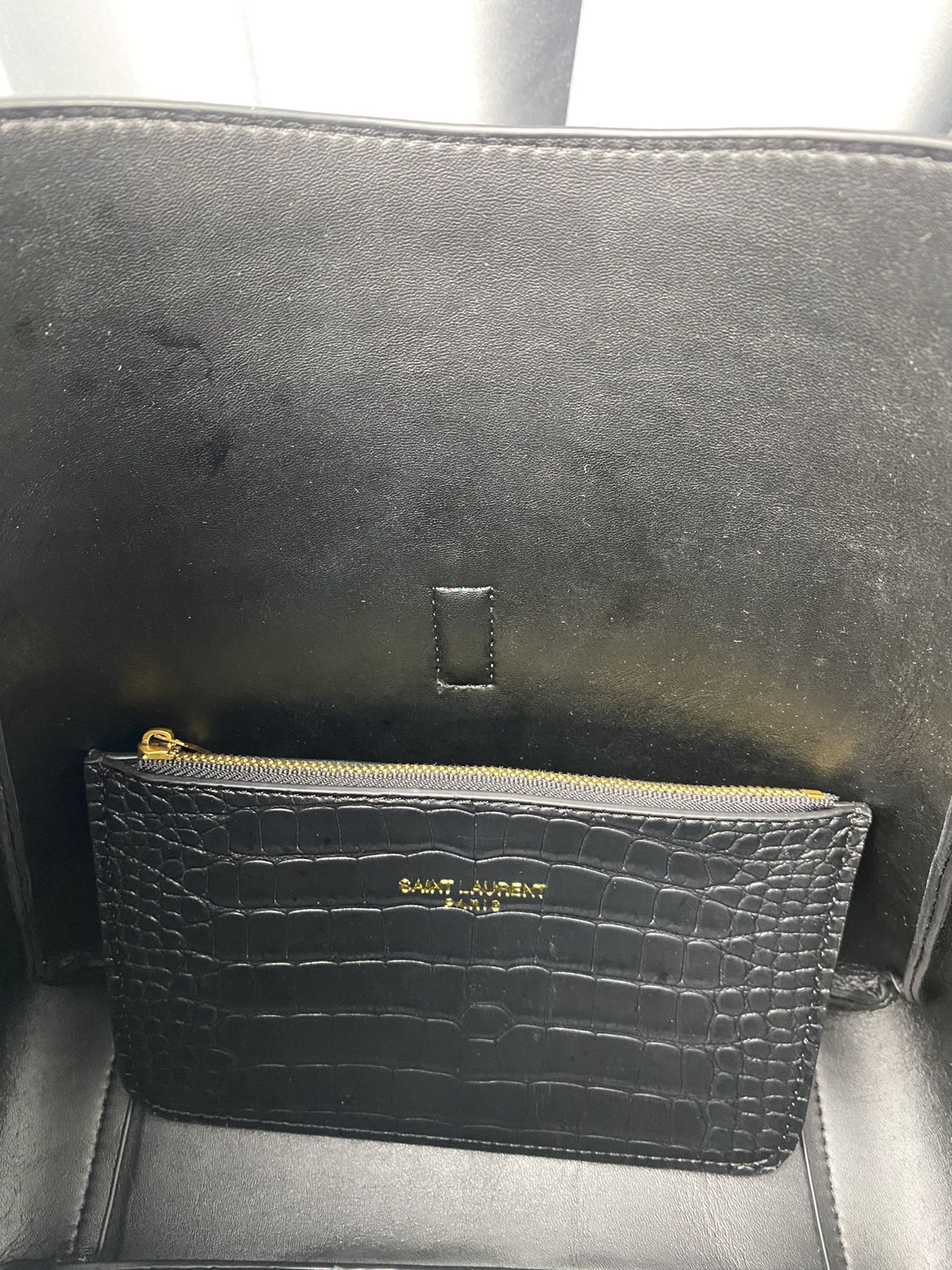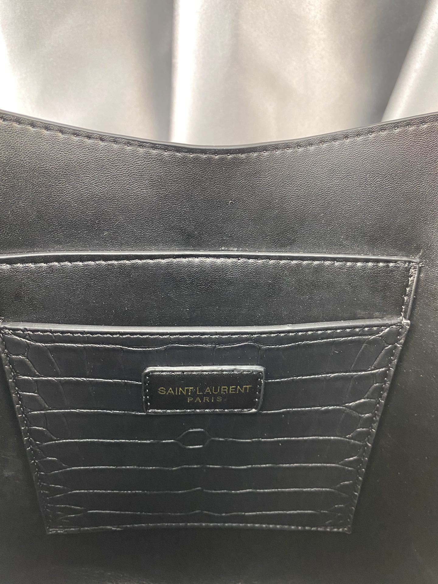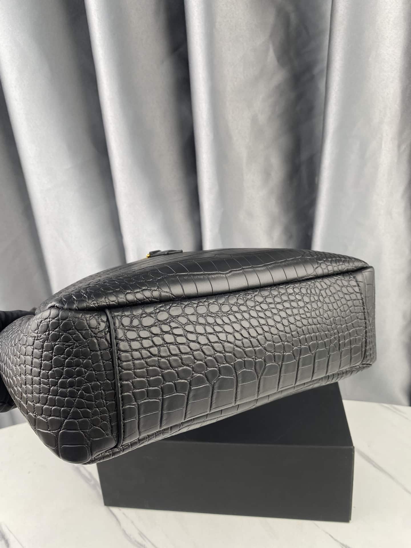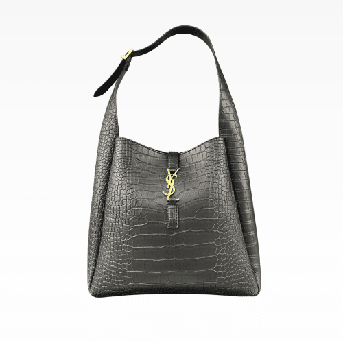 SAINT LAURENT LE 5 À 7 SOFT SMALL HOBO BAG IN EMBOSSED LEATHER BAGS BLACK 27CM