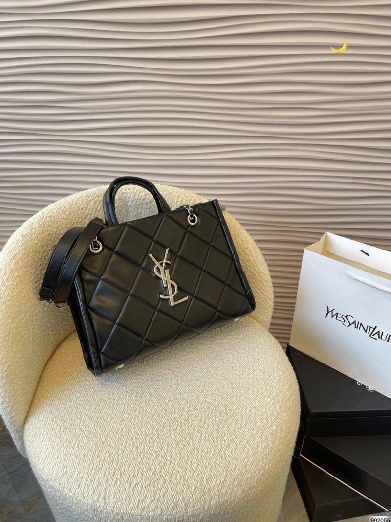 Saint Laurent Leather Tote Bag / Black 31Cm