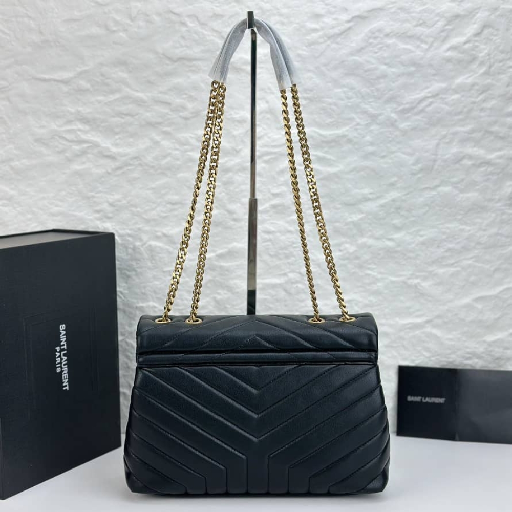 Saint Laurent Loulou Large / In Matelasse Leather / Black / 12.6 x 8.7 x 3.9 inches / Bronze-tone hardware / Shoulder Bag / Elegant Style