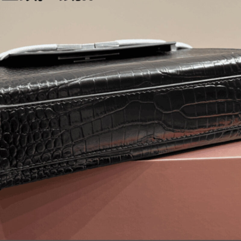 SAINT LAURENT MANHATTAN SMALL IN SHINY CROCODILE EMBOSSED LEATHER BLACK SILVER 25CM