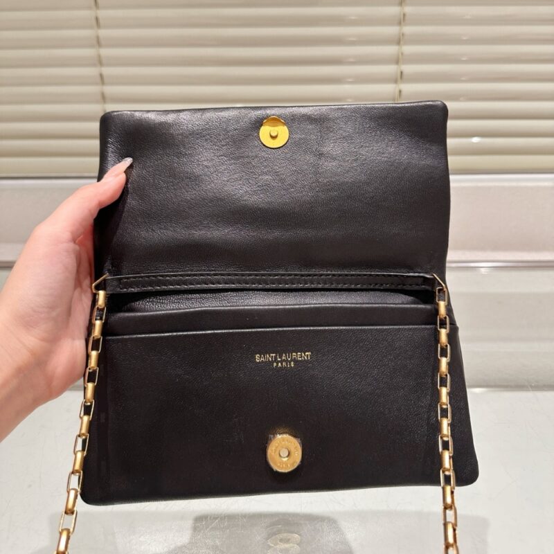 SAINT LAURENT MINI CALYPSO LEATHER SHOULDER BAG BLACK 22CM 801712 AACX7 1000