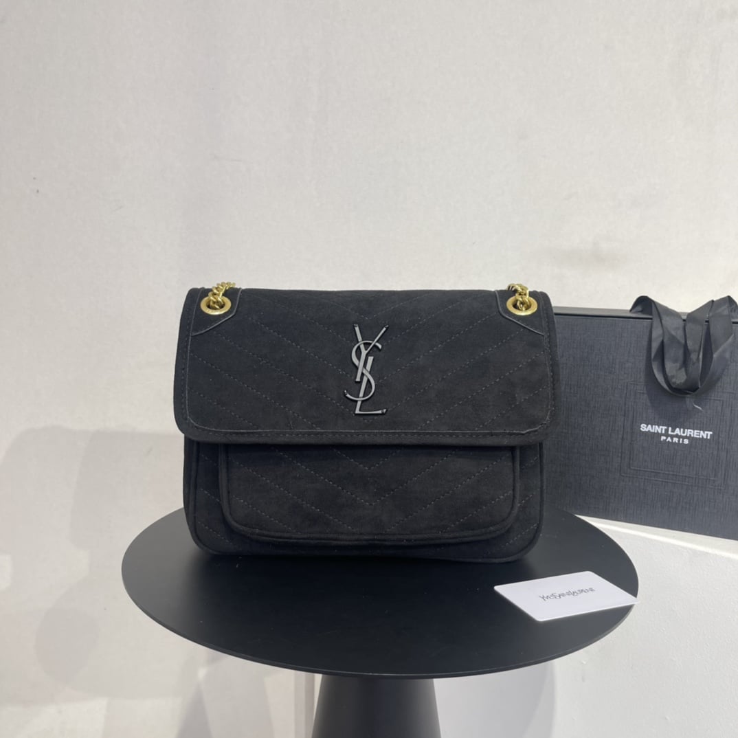 SAINT LAURENT NIKI BABY CHAIN BAG IN SUEDE BLACK