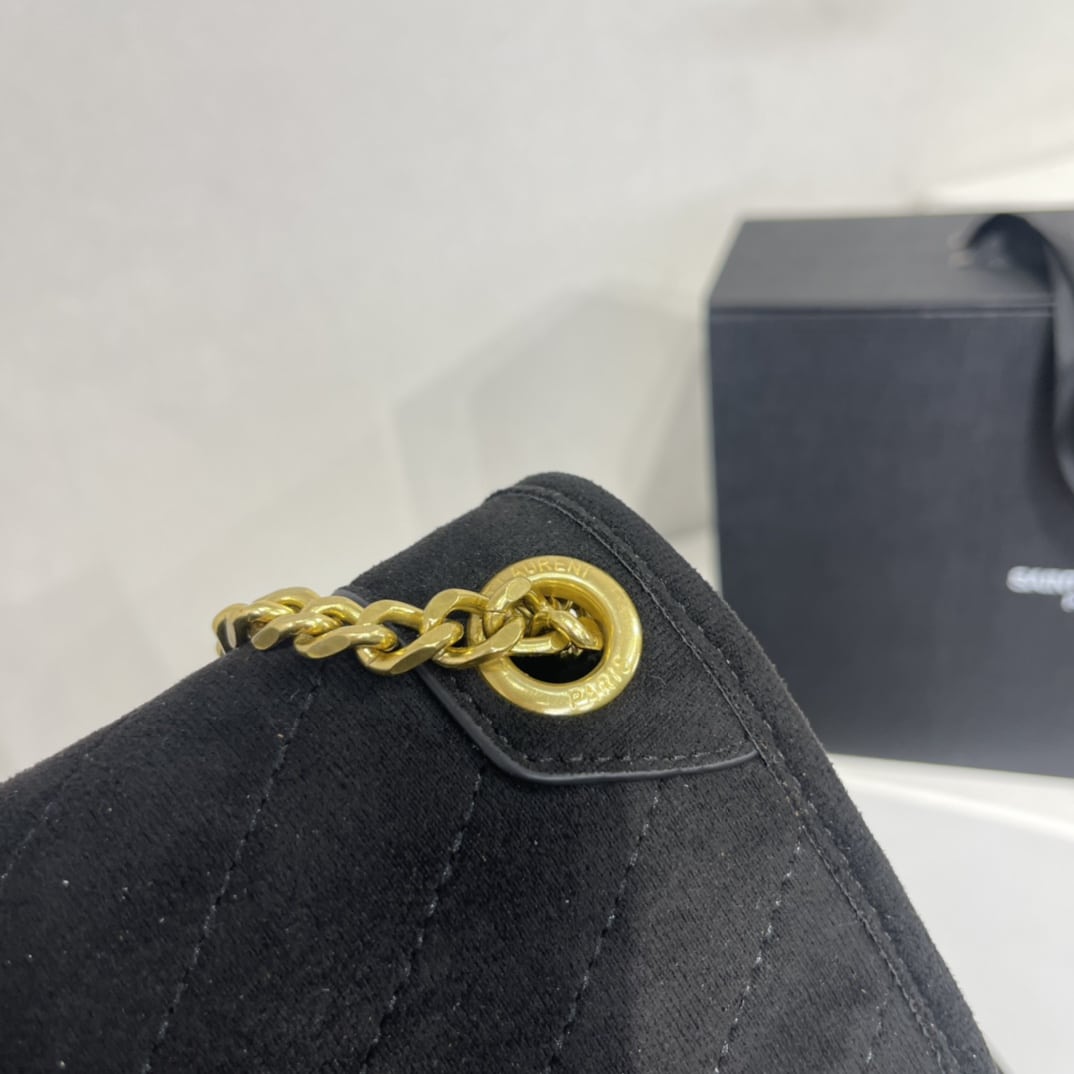 SAINT LAURENT BABY CHAIN BAG IN SUEDE BLACK 28CM