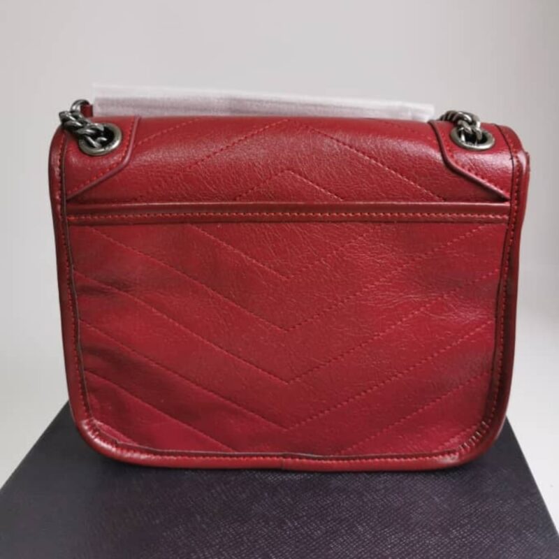 SAINT LAURENT NIKI MEDIUM IN LEATHER SILVER TONE RED 22CM