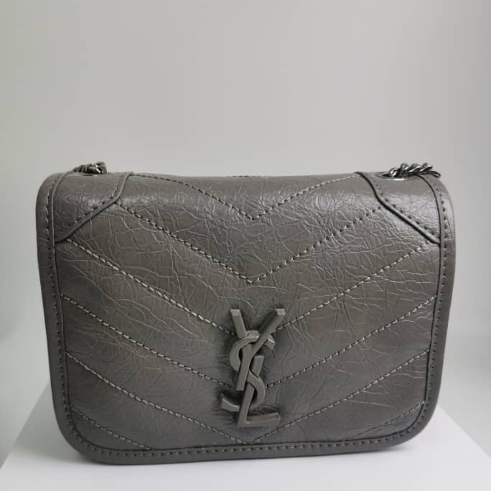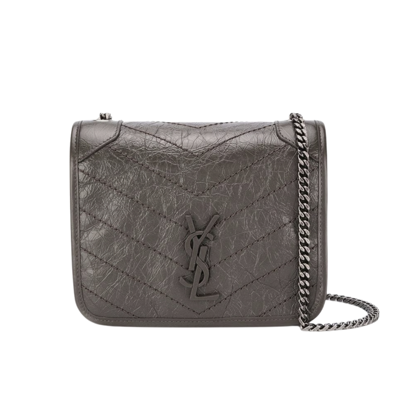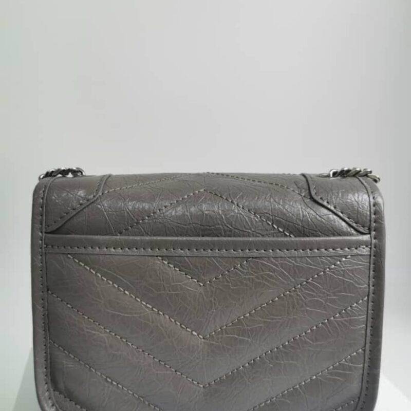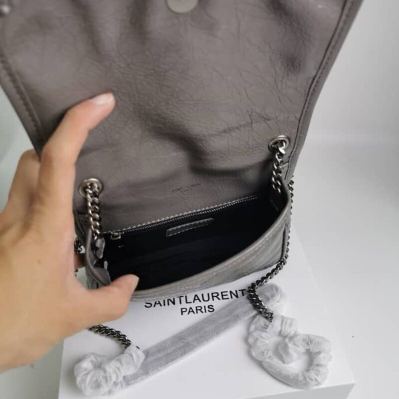 Saint Laurent Niki Vintage Leather Chain Wallet Gray / 19cm / 7.4 inches