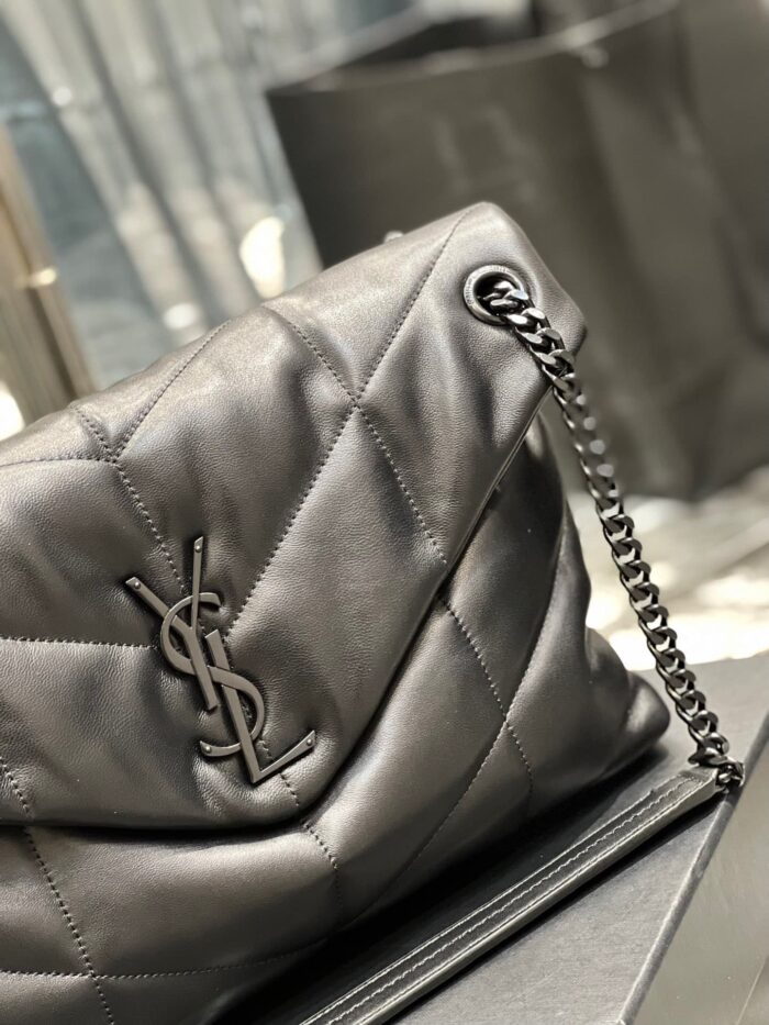 Saint Laurent Puffer Medium Chain Bag In Quilted / Matte Black Metal Hardware 35cm