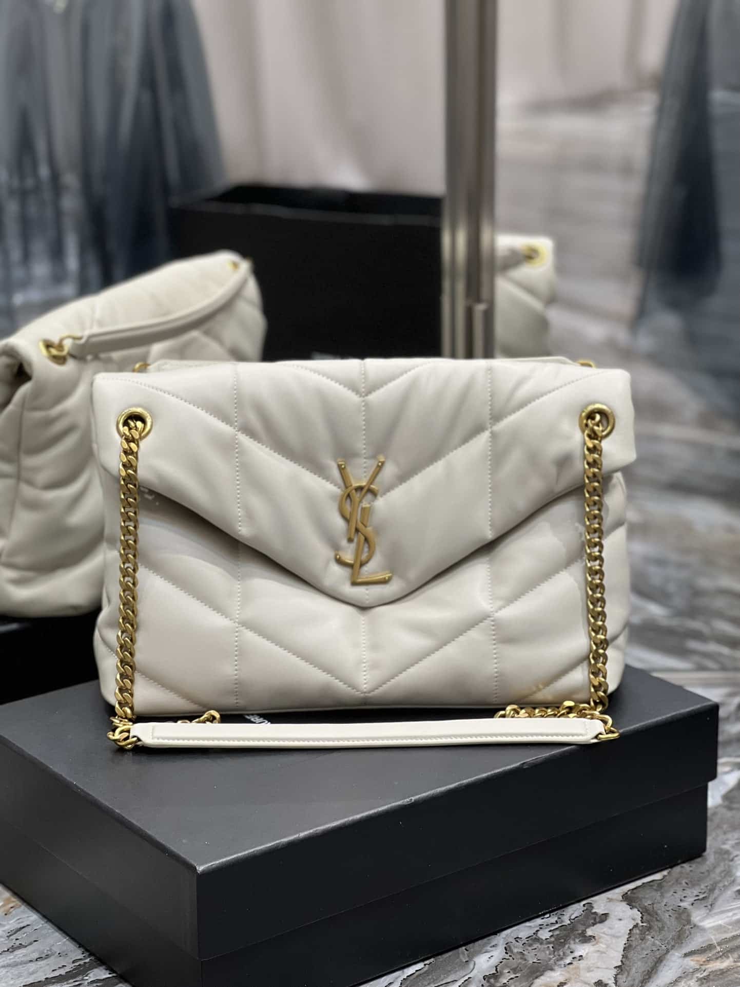 Saint Laurent Puffer Medium Chain Bag In Quilted / Blanc Vintage 35cm