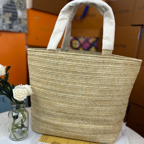 Rive Gauche Supple Tote Bag In Raffia Crochet / Naturel 42cm