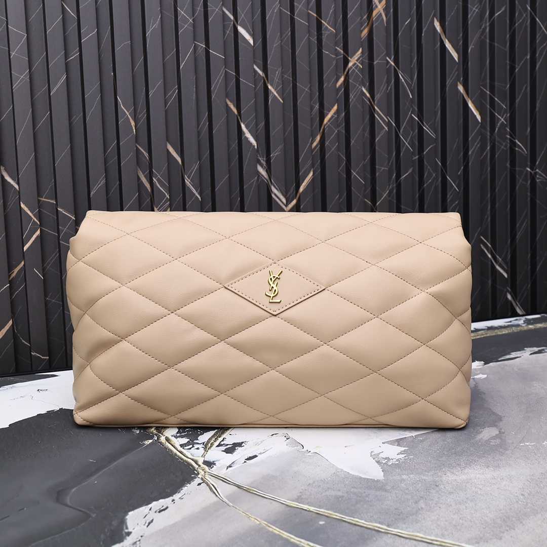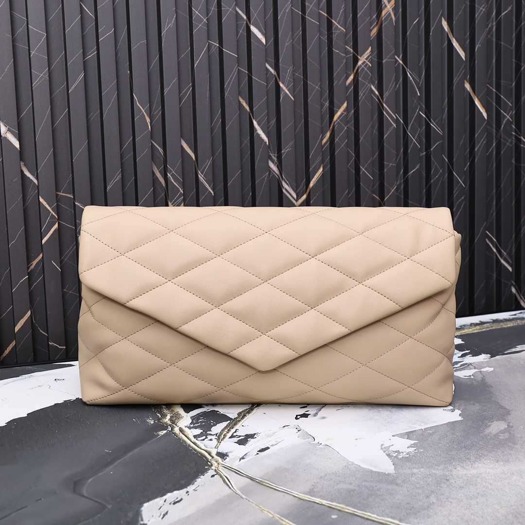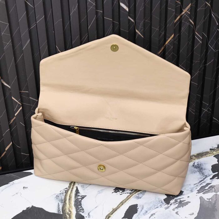 SAINT LAURENT SADE PUFFY LEATHER ENVELOPE CLUTCH BAG BEIGE 6550041EL01 37CM