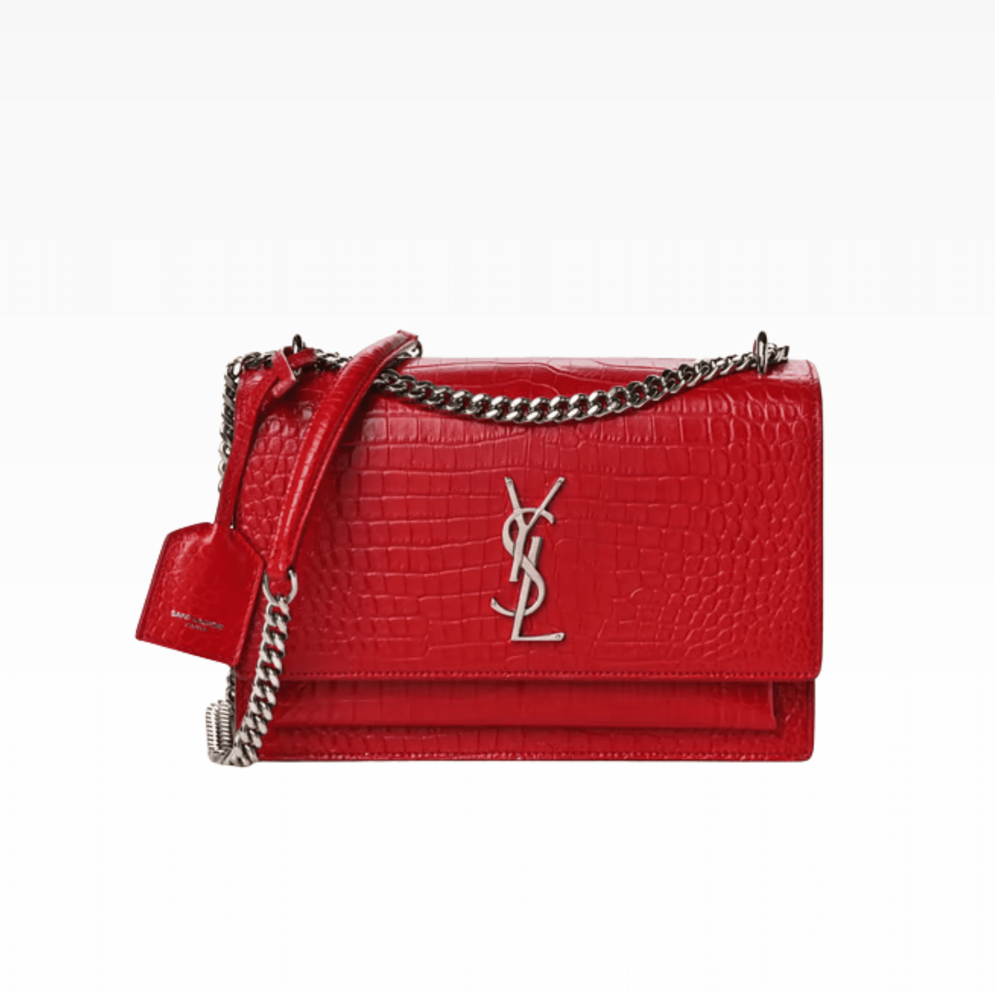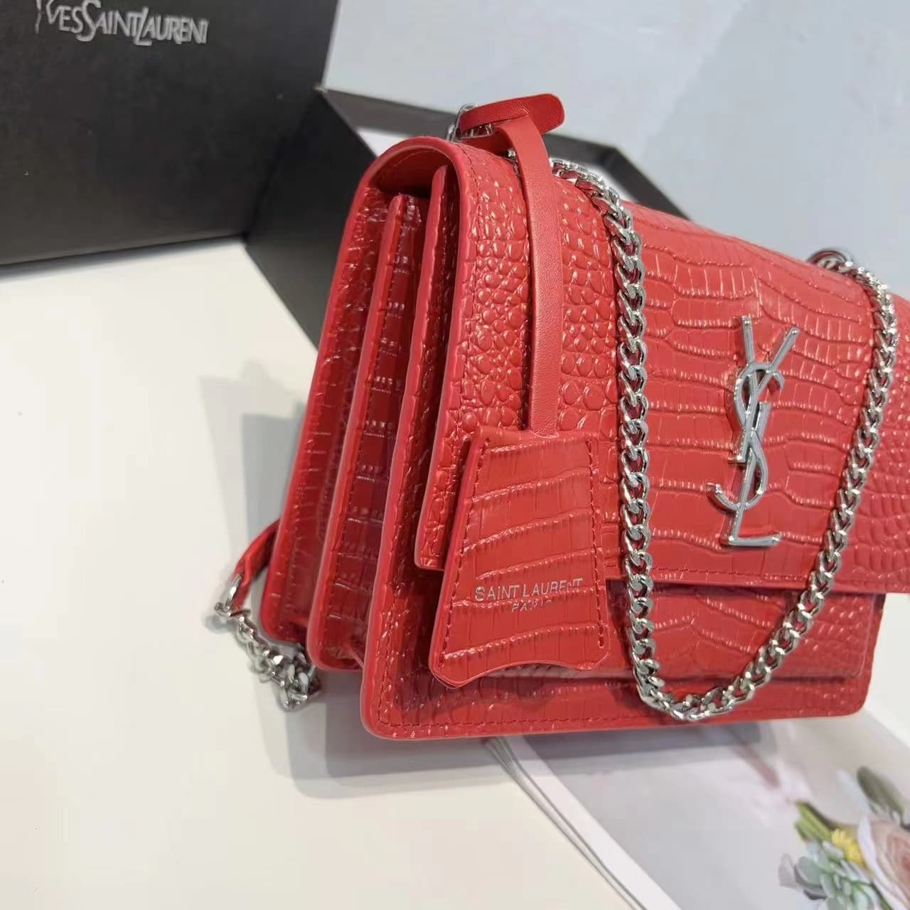 SAINT LAURENT SUNSET EMBOSSED LEATHER BAGS RED 22CM