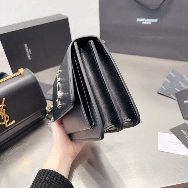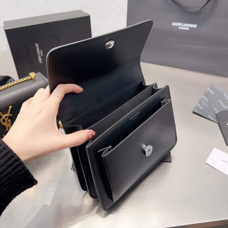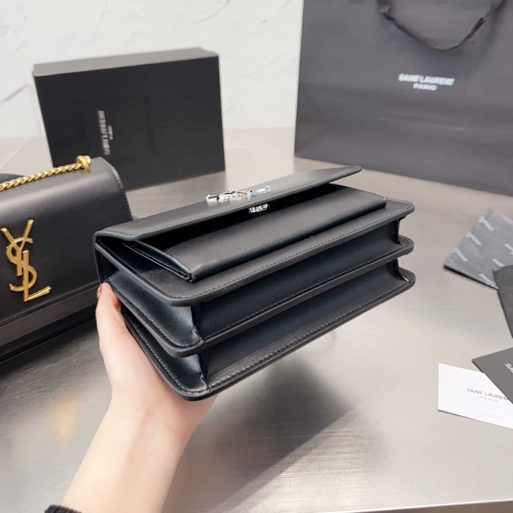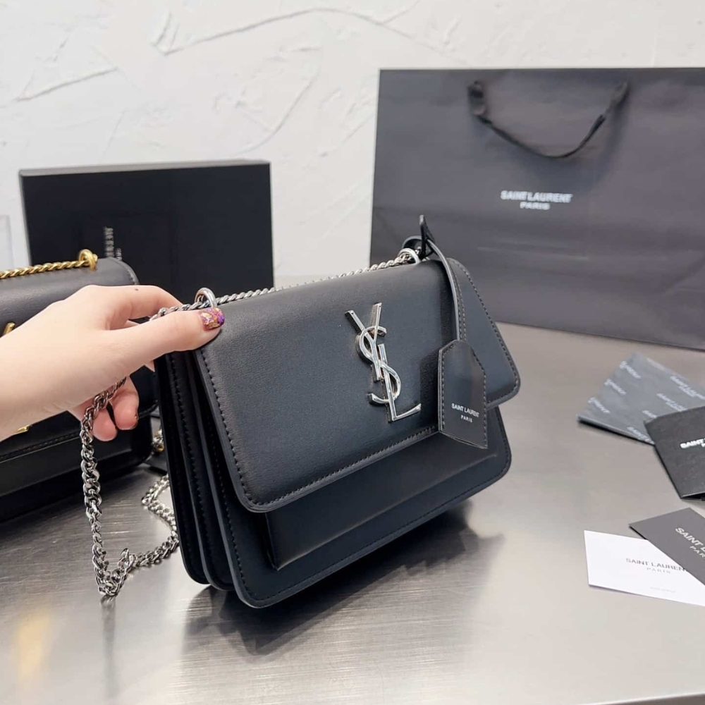Saint Laurent Sunset Medium In Smooth Leather Black with Silver Hardware 442906D420N1000 / 20.5Cm / 8 inches