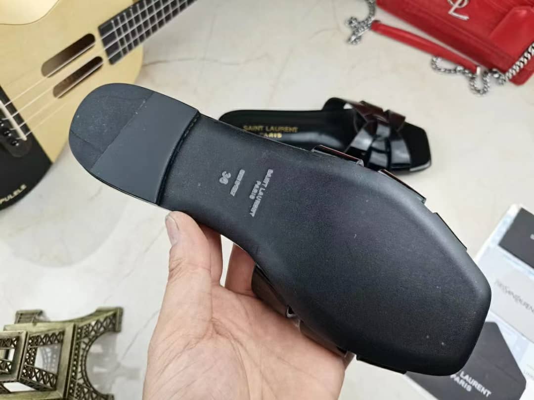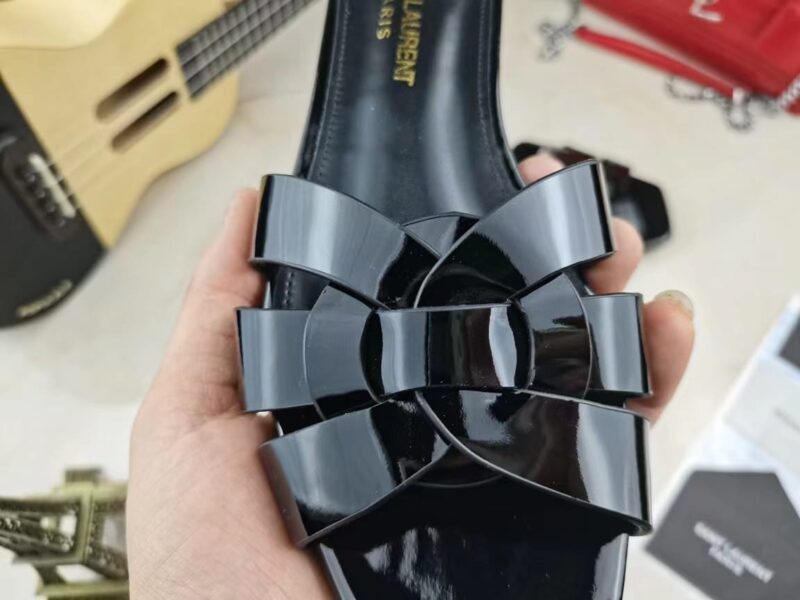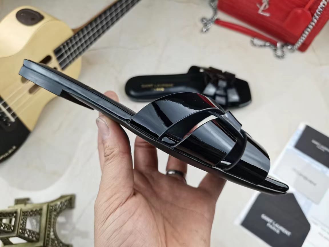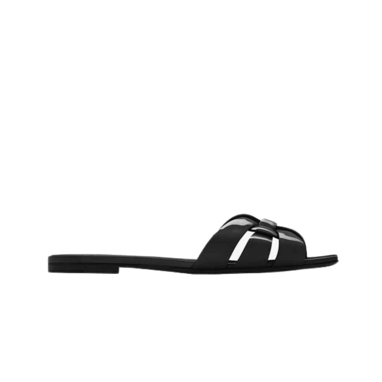 SAINT LAURENT TRIBUTE MULES IN PATENT LEATHER BLACK 571952B8I001000