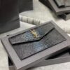 Saint Laurent Uptown Pouch In Crocodile Embossed Shiny Leather Gold Black 565739DND0J1000 / 27cm / 10.6 inches