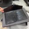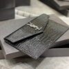Saint Laurent Uptown Pouch In Crocodile Embossed Shiny Leather Silver Black 565739DND0N1000 / 27cm / 10.6 inches