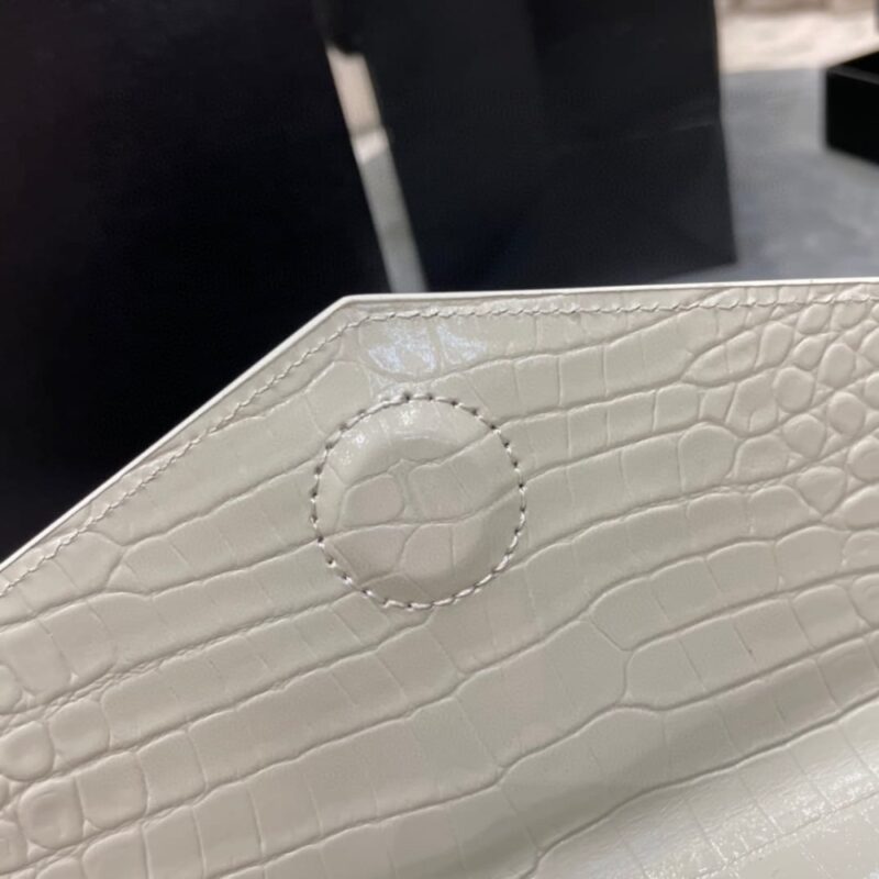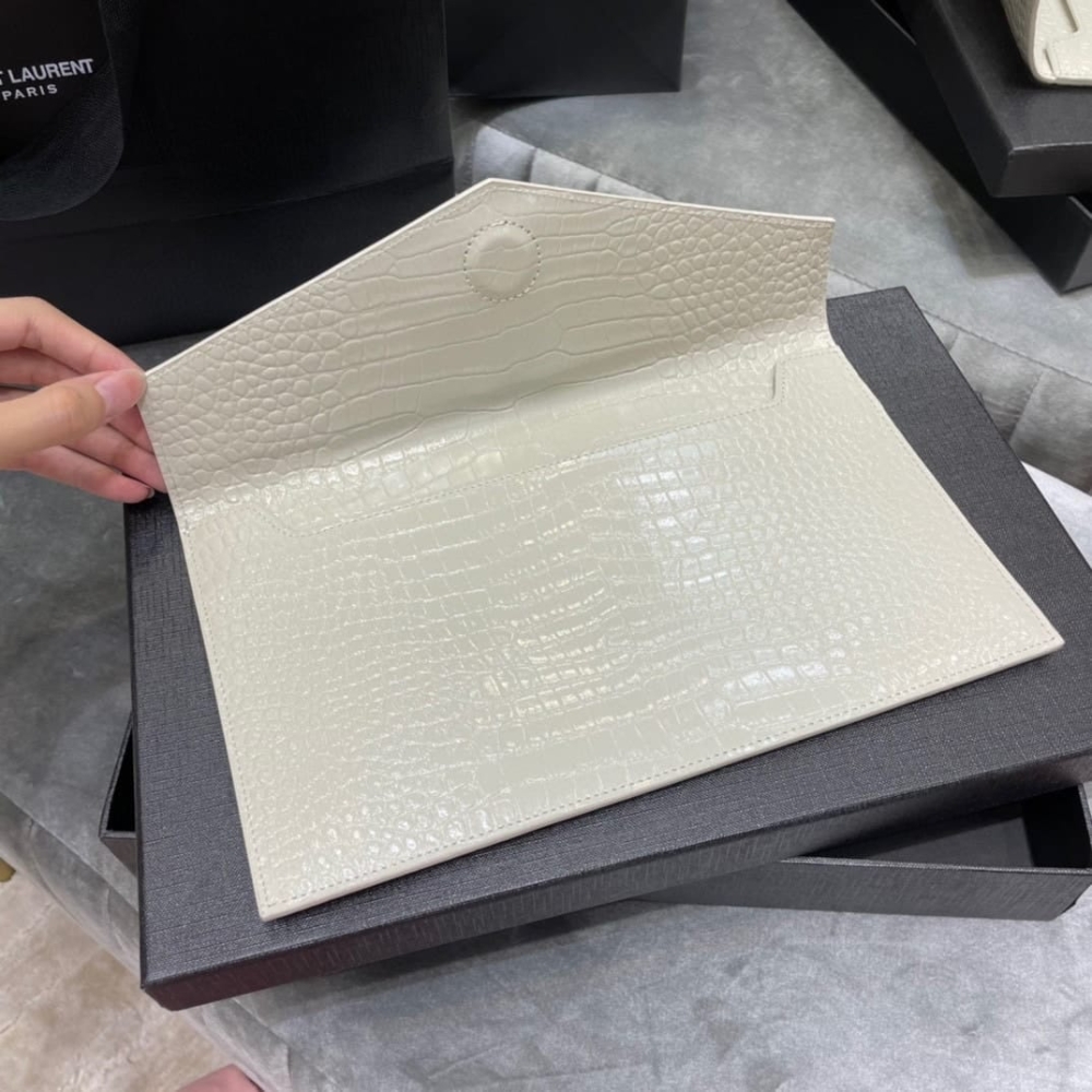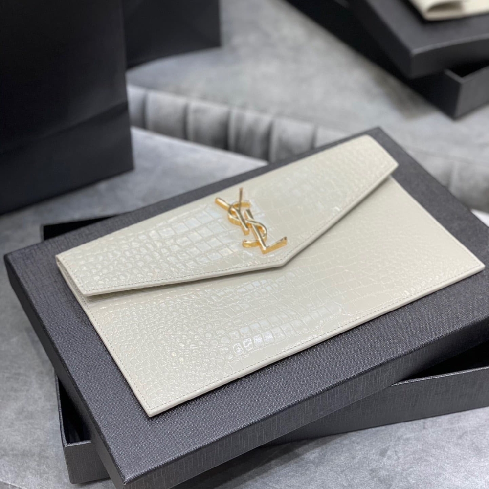 SAINT LAURENT UPTOWN POUCH IN CROCODILE EMBOSSED SHINY LEATHER WHITE 27CM 565739DND0J9207