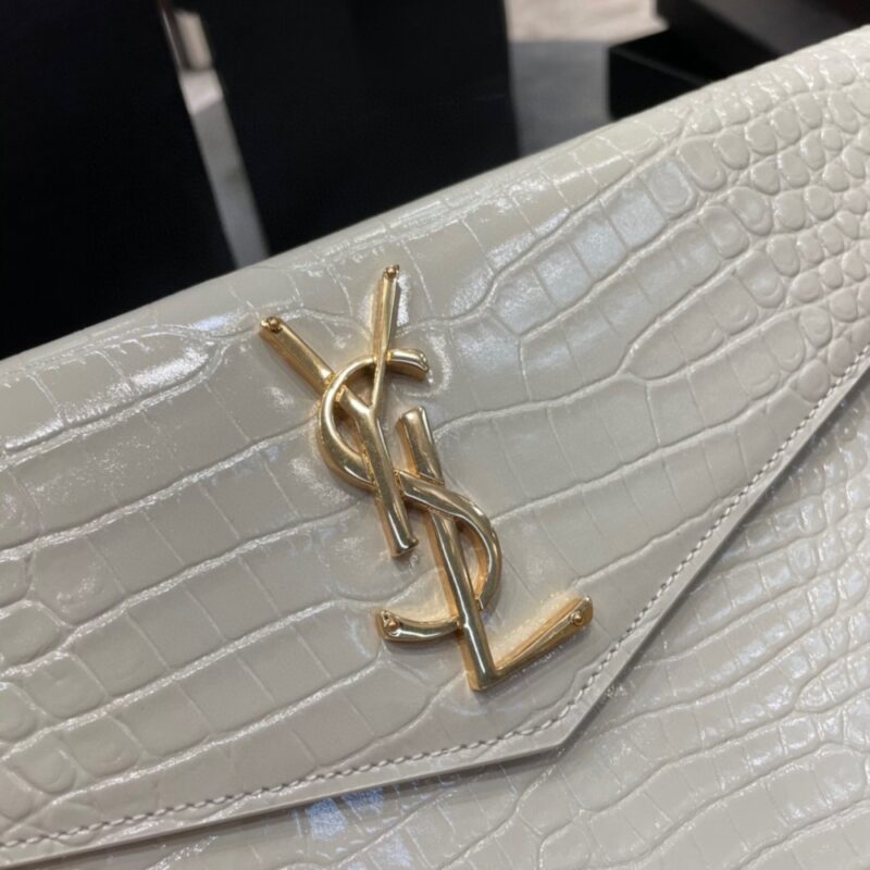Saint Laurent Uptown Pouch In Crocodile Embossed Shiny Leather Blanc Vintage 565739DND0J9207 / 27cm / 10.6 inches