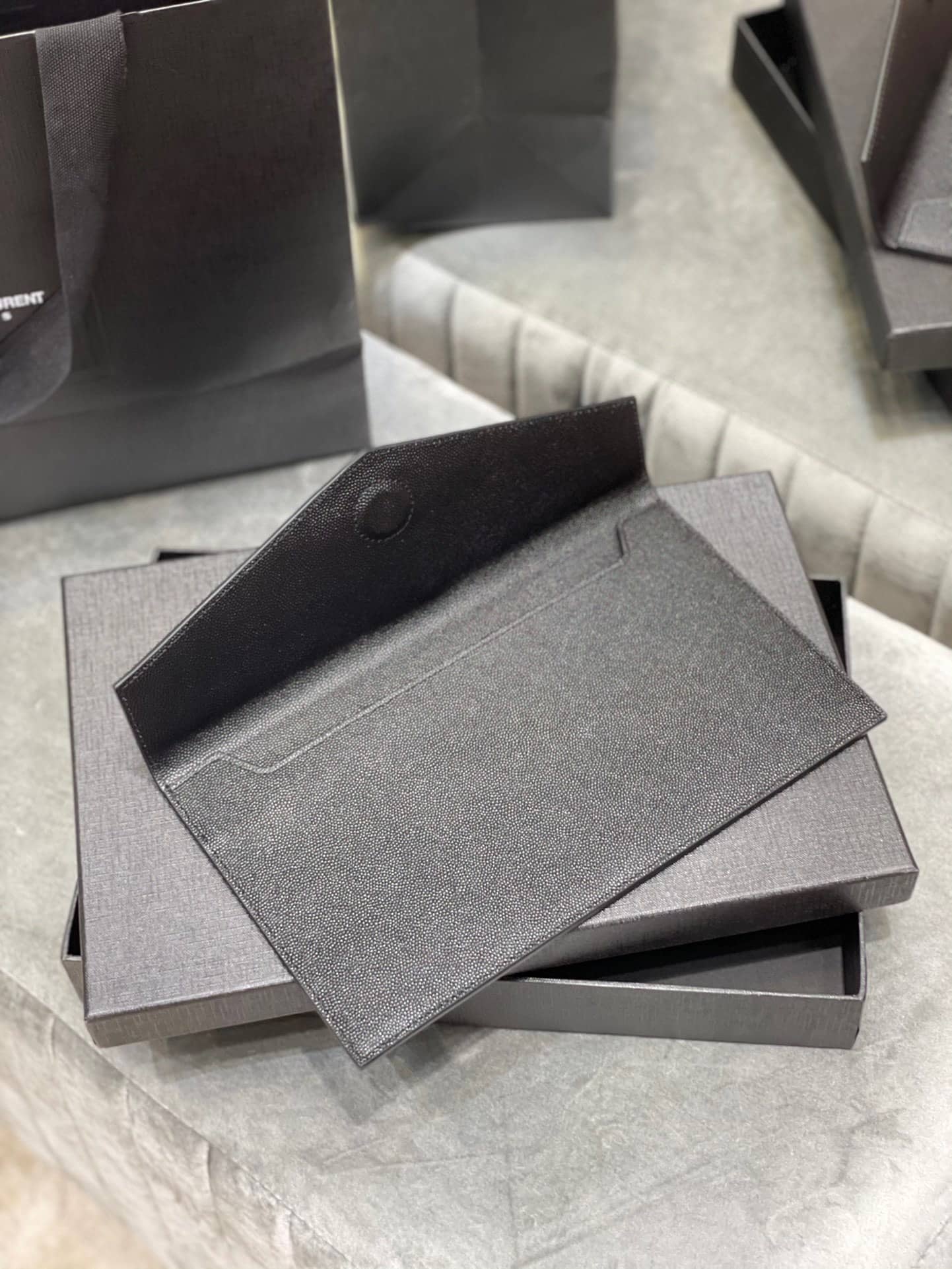 Saint Laurent Uptown Pouch In Grain De Poudre Leather Black 5657391GF0J1000 / 27cm / 10.6 inches